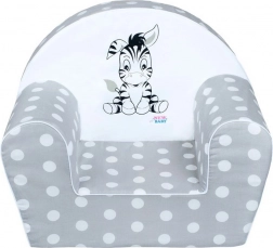Griul neutru cu buline și zebra veselă vor încânta atât copiii, cât și părinții. Fotoliul se potrivește perfect atât în camere moderne, cât și jucăușe.