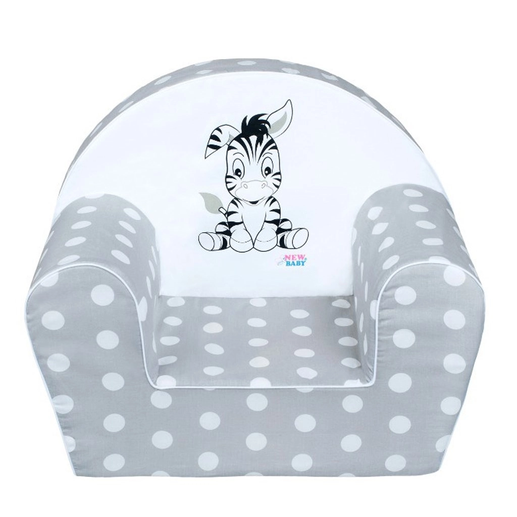 Fotoliul pentru copii New Baby Zebra este foarte moale, stabil și, datorită umpluturii din spumă, foarte ușor, astfel încât copilul îl poate muta cu ușurință oriunde are nevoie. Husa gri cu buline albe este completată de un imprimeu plăcut cu zebră, care se potrivește frumos într-un interior modern pentru copii.