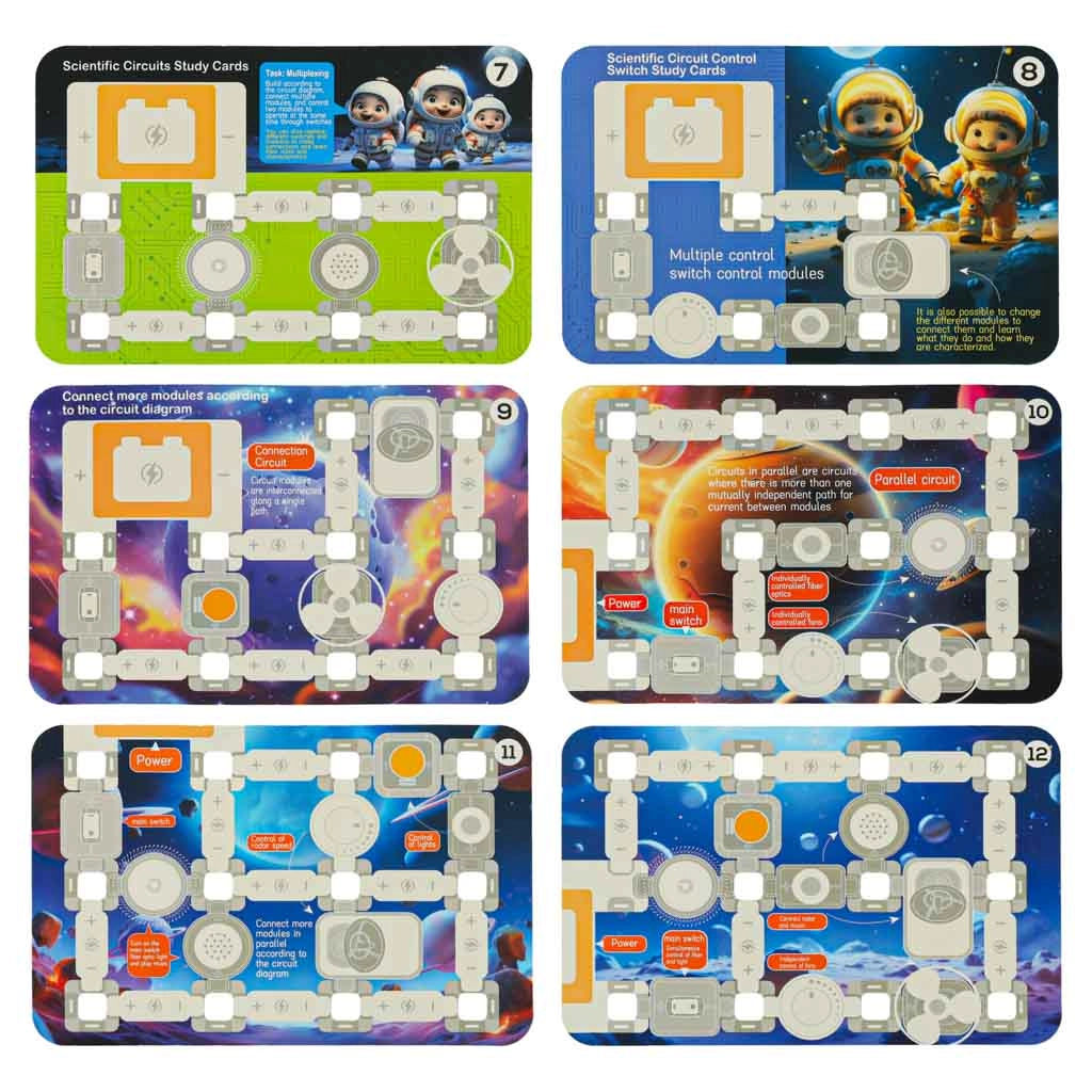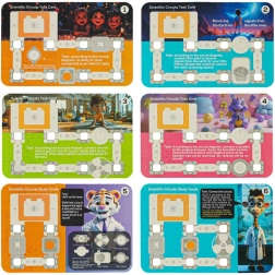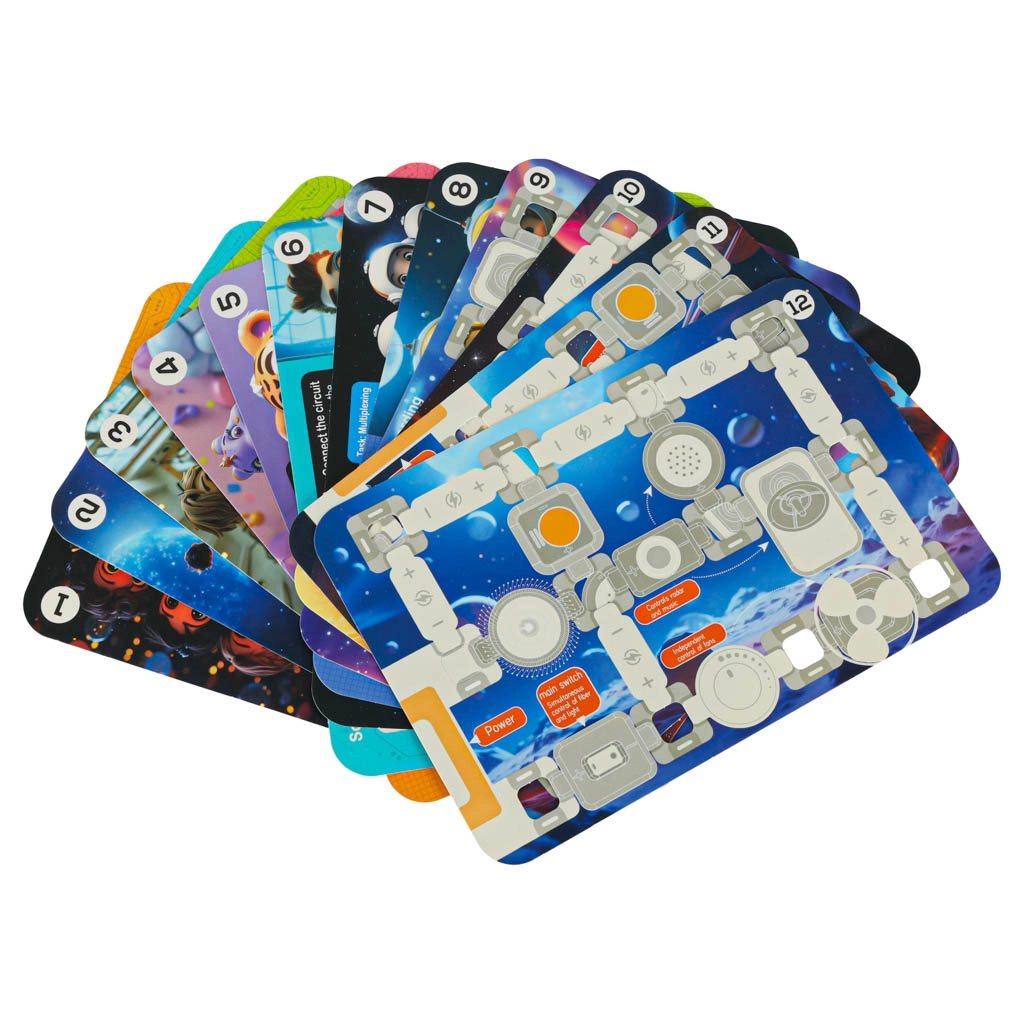 Cardurile colorate cu diagrame și sarcini îi ghidează pas cu pas de la proiecte simple la conexiuni mai complexe. Excelent pentru învățare acasă și pentru cercuri școlare.