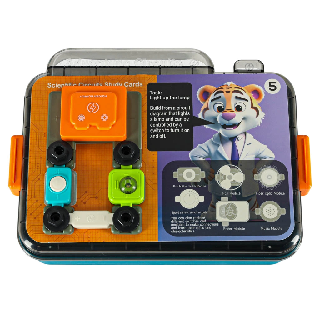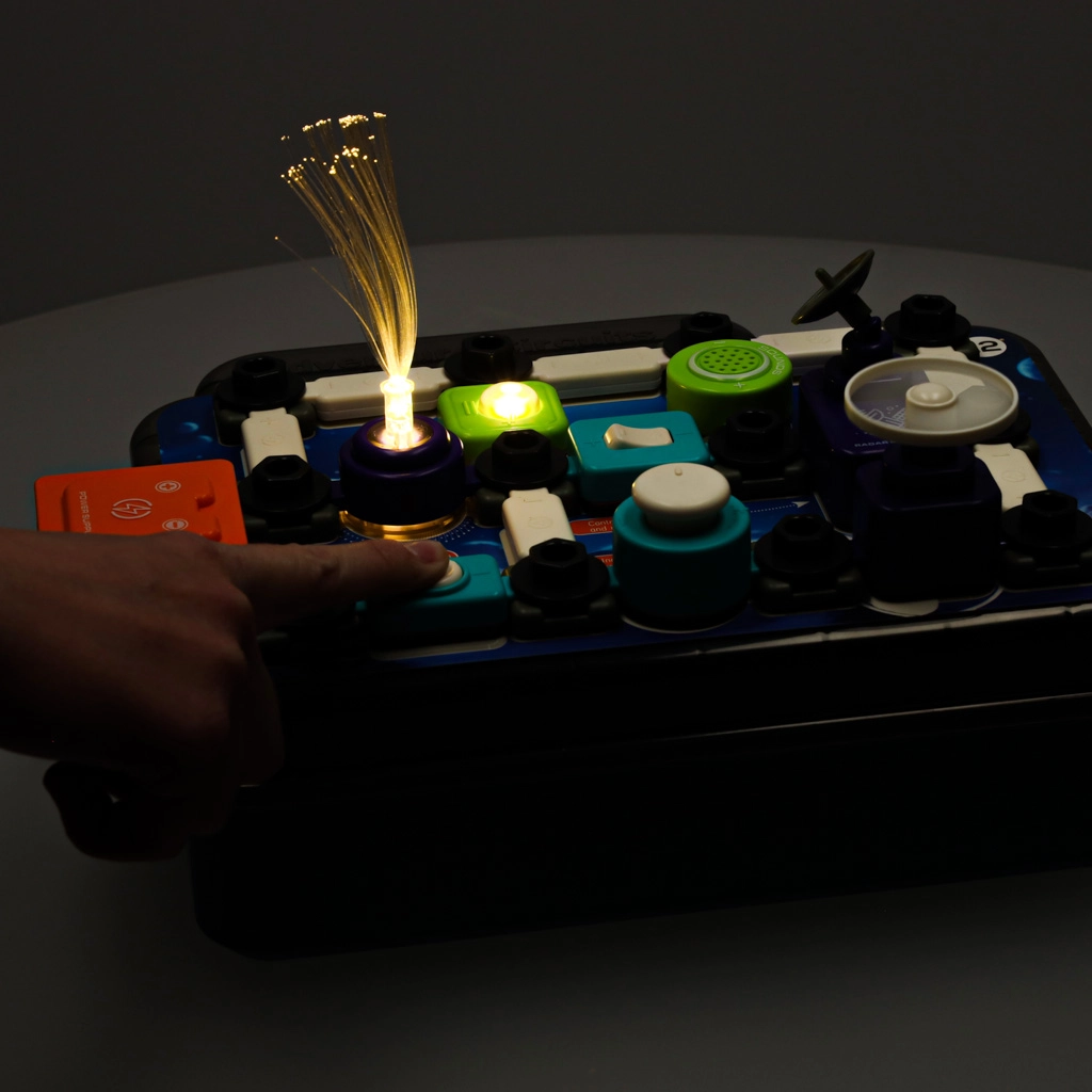 Acest set STEM inteligent oferă copiilor o introducere sigură și clară în lumea circuitelor electrice. Elementele modulare se conectează ușor, iar fiecare piesă montată arată imediat rezultatul – lumină aprinsă, melodie redată sau ventilator în mișcare. Cheia interactivă luminoasă a circuitului ajută la înțelegerea conceptului de închidere a circuitului.