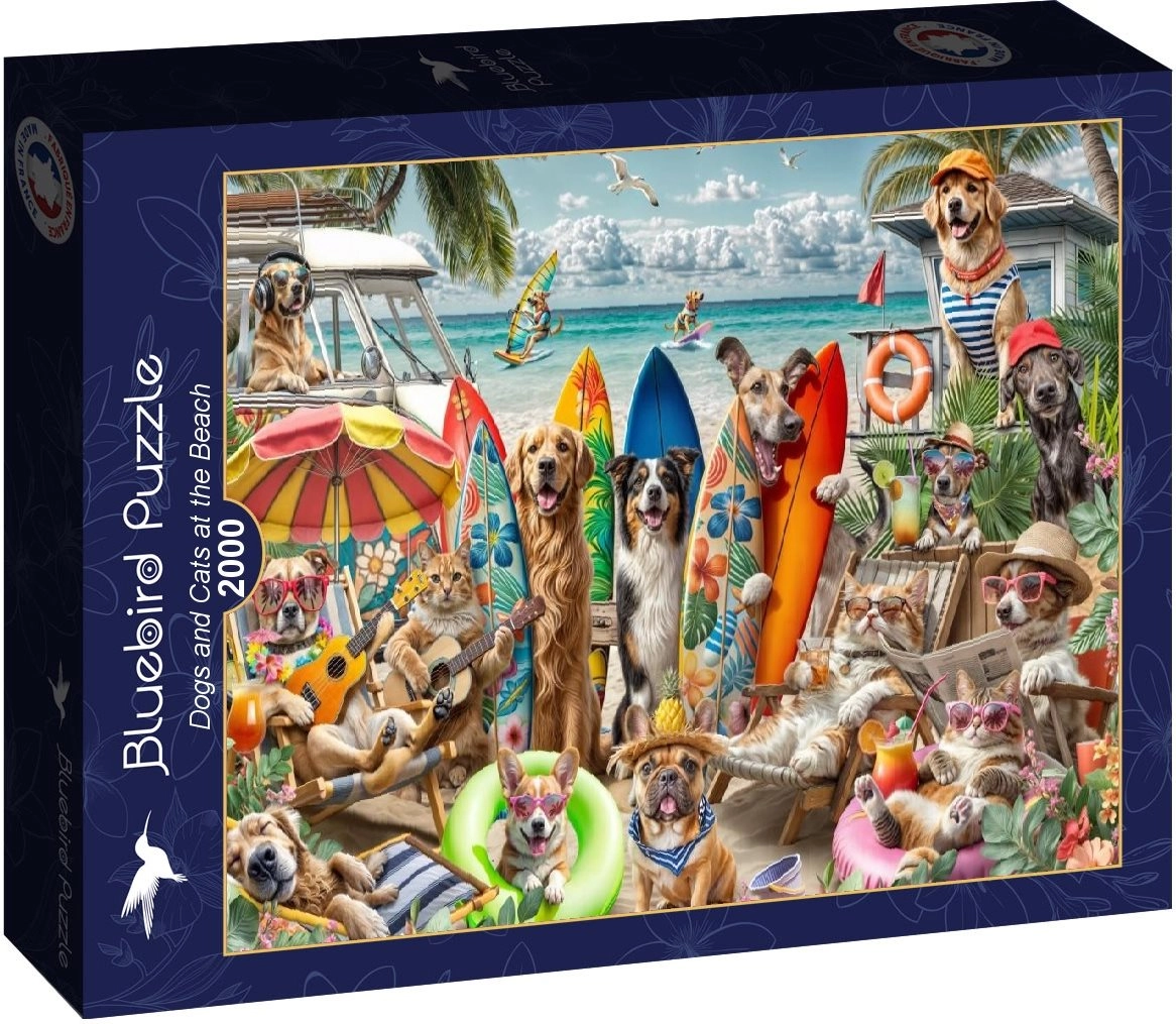Bucură-te de ore întregi de distracție cu puzzle-ul de calitate BLUEBIRD, cu motivul adorabil al animalelor de companie la mare. Setul conține 2000 de piese, iar după asamblare creează o imagine impresionantă cu dimensiunile de 98 × 69 cm – ideală pentru iubitorii de animale și pentru pasionații de puzzle-uri mai avansați.