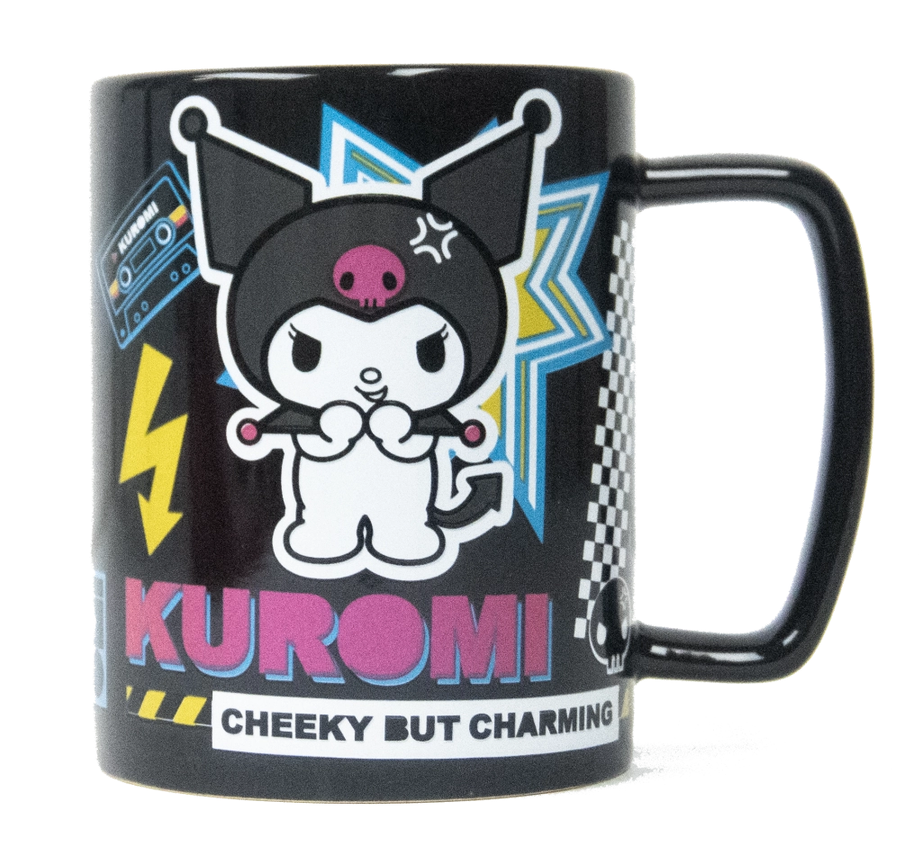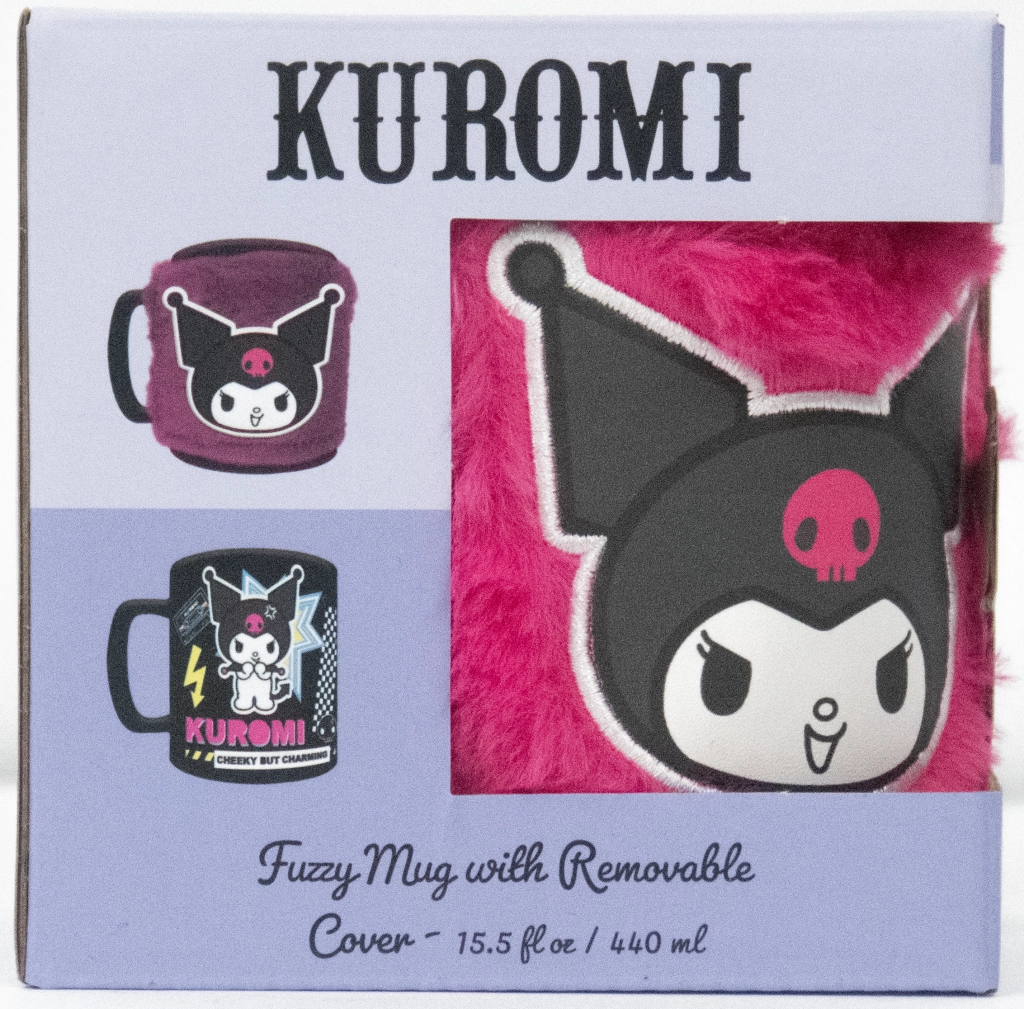 Cană stilată inspirată de personajul KUROMI, care oferă un experiment unic al băuturii datorită husei plușate detașabile și moi. Are un volum de 440 ml și, pentru o întreținere ușoară, este potrivită pentru mașina de spălat vase și cuptorul cu microunde (doar fără husă).