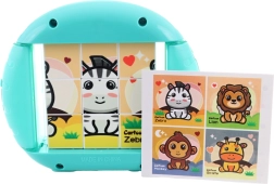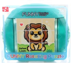 Acest puzzle colorat, cu piese rotative, îmbină jocul cu învățarea. Prin rotirea și glisarea pieselor, copiii compun imagini drăguțe cu animăluțe, precum leul sau zebra. Plasticul durabil și designul clar asigură o utilizare comodă și sigură chiar și pentru mânuțele mici.