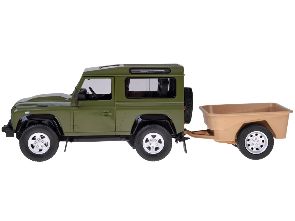 Land Rover Defender Rastar controlat de la distanță 1:14 cu remorcă – verde