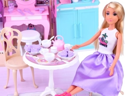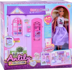 Setul include păpușa ANLILY cu păr lung ideal pentru pieptănat, mobilier (pat cu lenjerie, comodă cu sertare, cuier, cadă, WC, măsuță de toaletă cu taburet, set de dining), echipamente de bucătărie și multe accesorii pentru îngrijire și gătit. Ușile și ferestrele care se deschid, decorațiunile și soneria pe baterii susțin jocul de rol realist.
