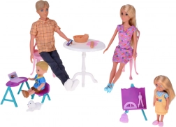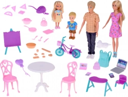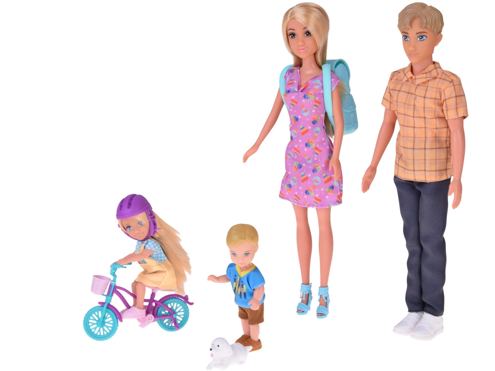 Patru păpuși cu haine detaliate și articulații mobile le permit copiilor să redea situațiile cotidiene, de la micul dejun până la relaxarea de seară. Este inclus și un cățeluș drăguț.