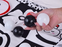 Plasa respirabilă păstrează jucăriile în interior și oferă părinților vizibilitate clară. Mingiile din plastic incluse transformă covorașul într-un mini teren de joacă distractiv.