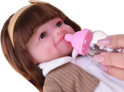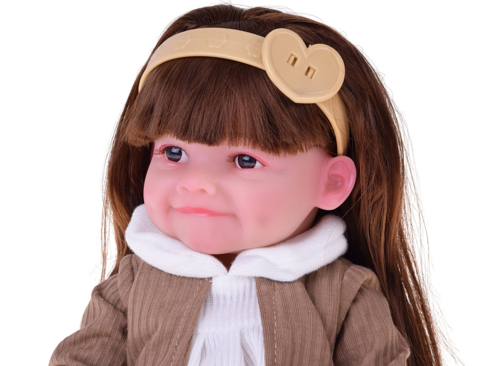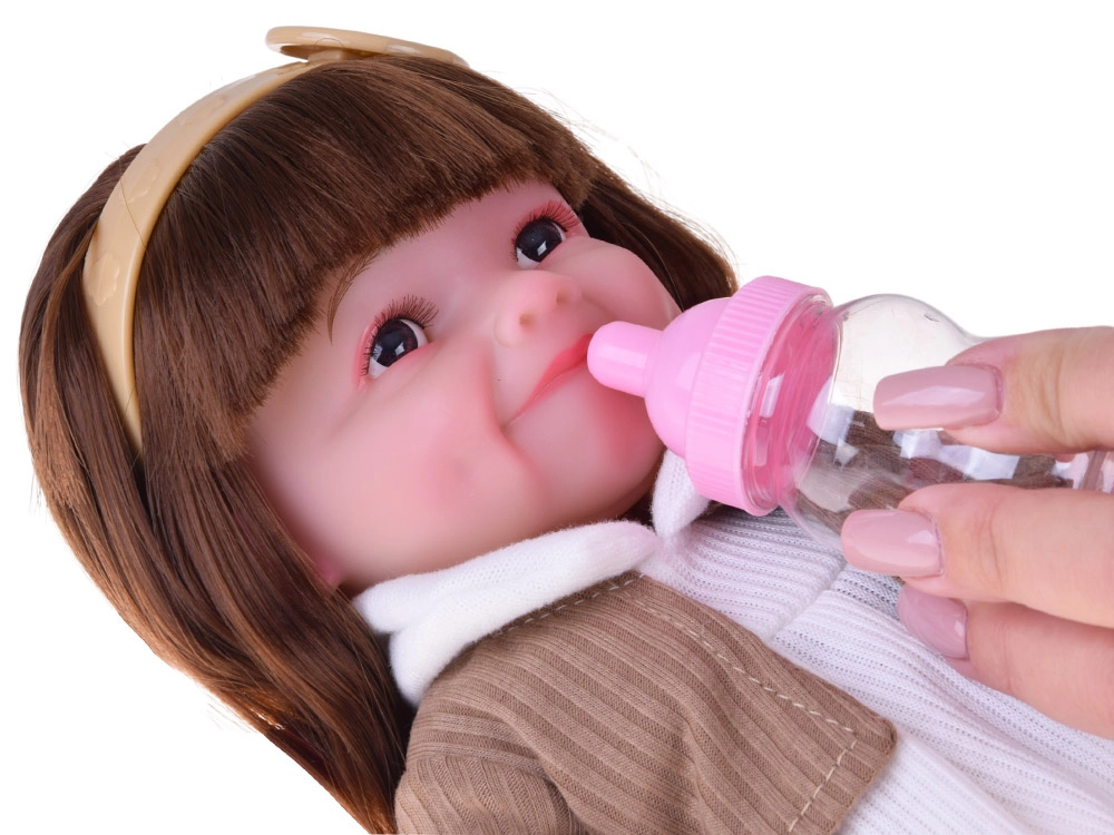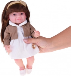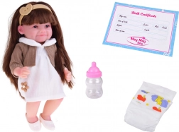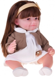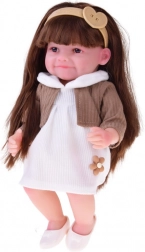 Păpușa Tosia, cu un zâmbet delicat și păr lung castaniu, va bucura orice copil. Are corp moale, plăcut la atingere, membre mobile și poate sta singură în șezut. Setul include biberon, scutec și certificat de naștere pentru un joc de îngrijire realist. Ținuta stilată cuprinde rochiță albă, cardigan bej, bentiță și balerini detașabili.