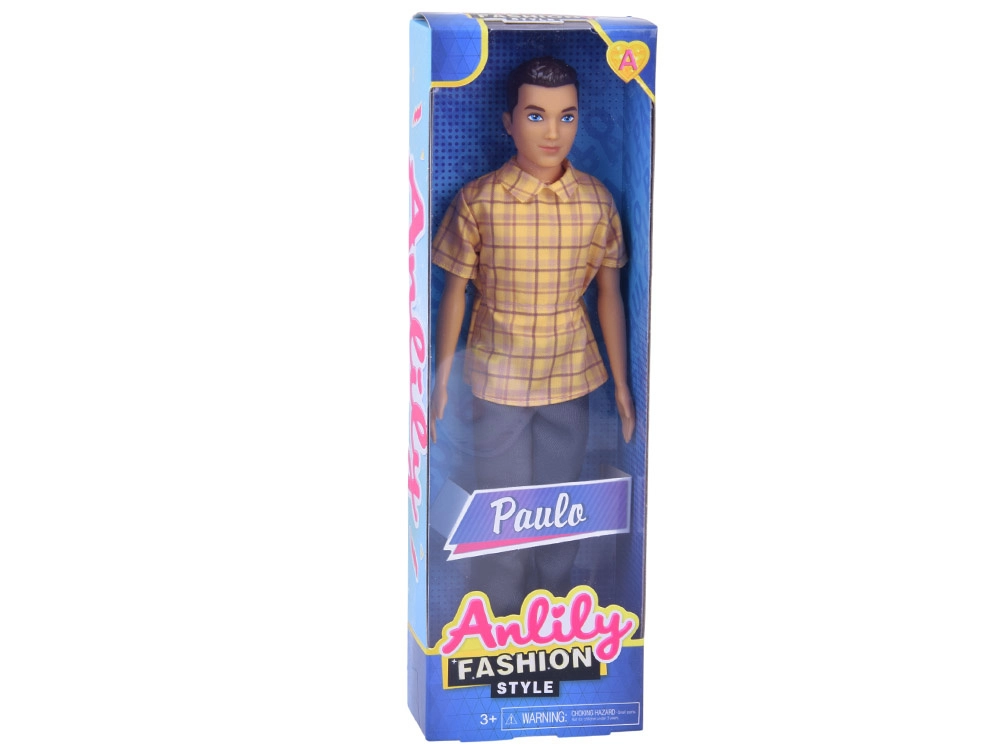 Băiatul stilat Paulo de la Anlily îmbină lookul clasic cu o ținută modernă. Are păr scurt închis la culoare, expresie prietenoasă și are aproximativ 30 cm înălțime. Îmbrăcat cu o cămașă galbenă în carouri, pantaloni închiși la culoare și teniși albi, este pregătit atât pentru joaca de zi cu zi, cât și pentru ocazii speciale. Umerii și picioarele flexibile permit poziționarea cu ușurință, iar hainele sunt ușor de scos pentru schimbări amuzante de ținută.