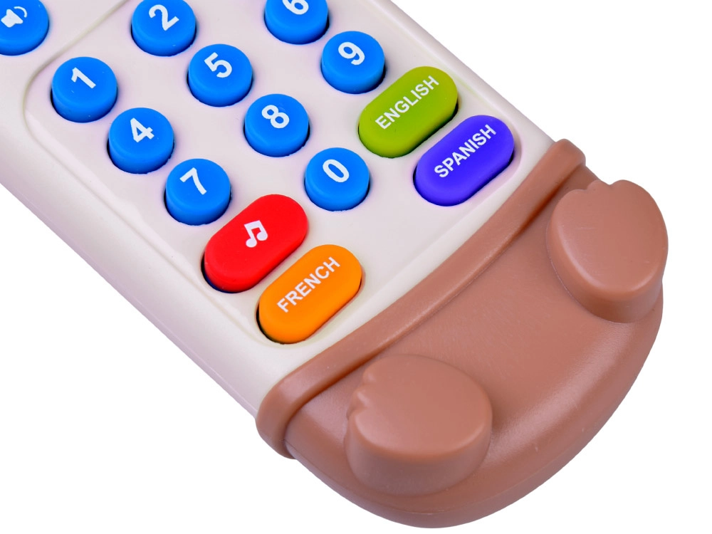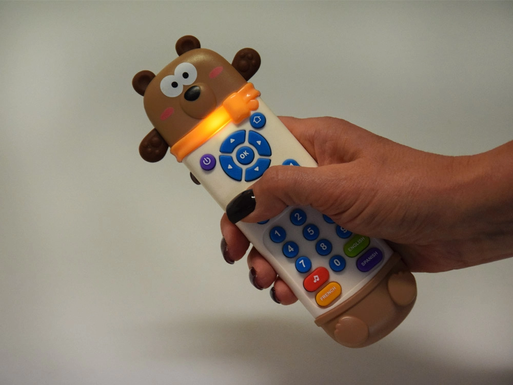 La apăsarea butoanelor, jucăria redă melodii și sunete amuzante, iar pe ceașca ursulețului clipește o lumină care susține percepția vizuală. Astfel, telecomanda dezvoltă curiozitatea, coordonarea mână‑ochi și oferă alinare gingiilor.