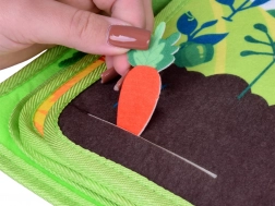 Ridicarea ferestruicilor, „smulgerea” morcovilor din „strat”, atașarea rotițelor cu arici și șiretuitul din hambar – toate gândite pentru antrenamentul degetelor și coordonării.