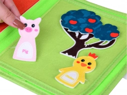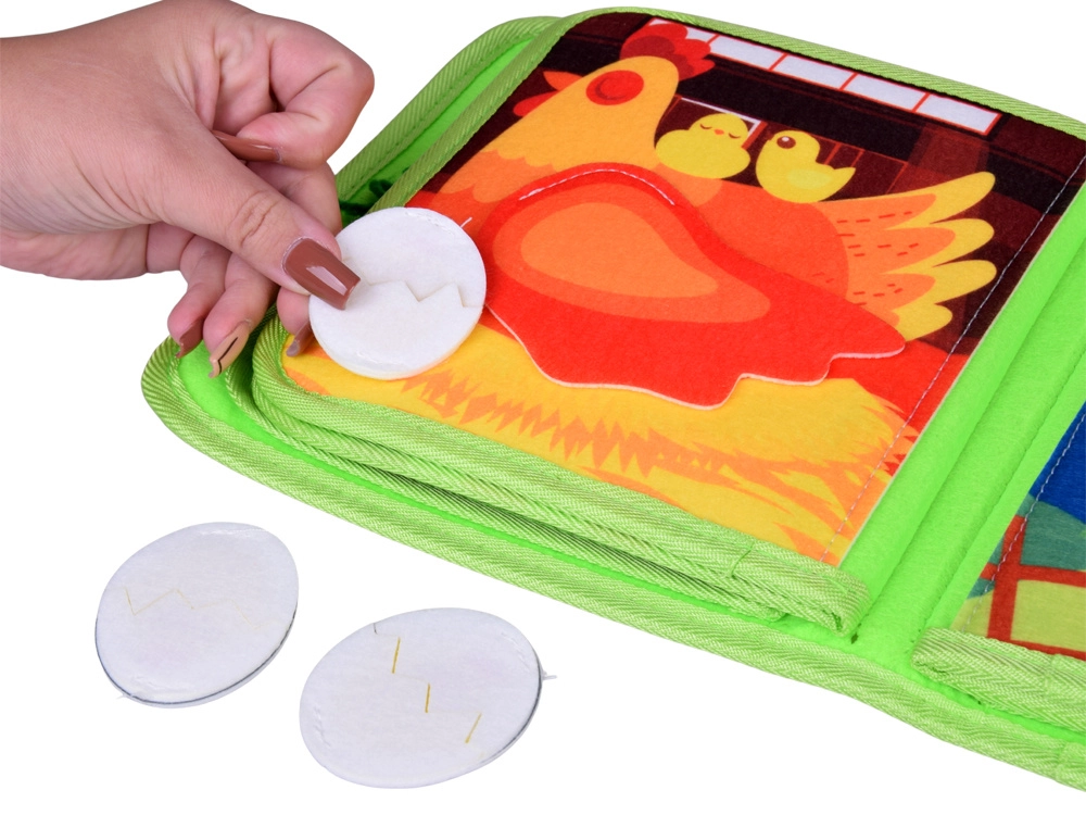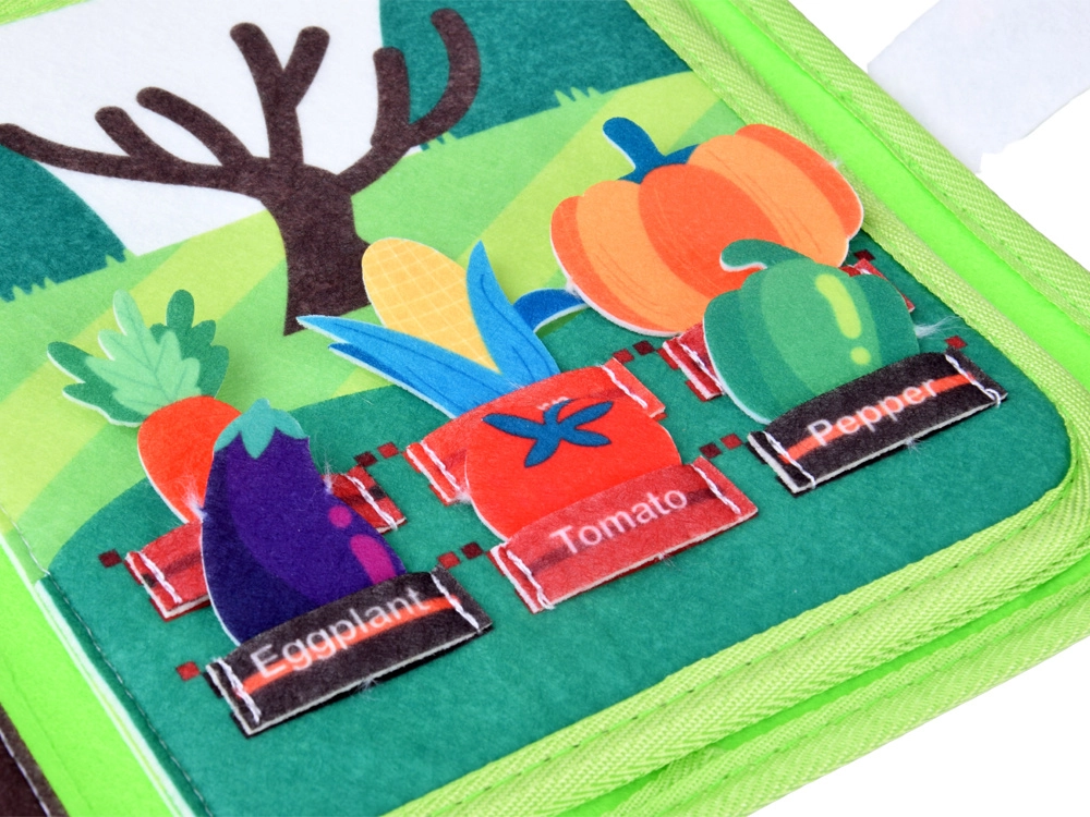 Cărțicica este realizată din fetru moale, plăcut la atingere, toate marginile sunt netede și sigure pentru mânuțele mici. Susține motricitatea fină, percepția senzorială, învățarea cuvintelor și jocul independent. Datorită dimensiunilor compacte, este un companion excelent acasă și în călătorii.