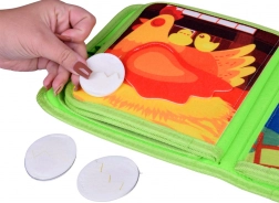 Realizare textilă fără margini ascuțite, cărticică ușoară și compactă cu închidere. Ușor de luat în mașină, în vizită sau în vacanță.