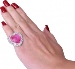 Tiara din plastic cu ton argintiu, cu o inimă mare în centru, oferă fiecărui costum un aer regal.