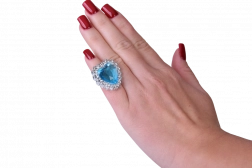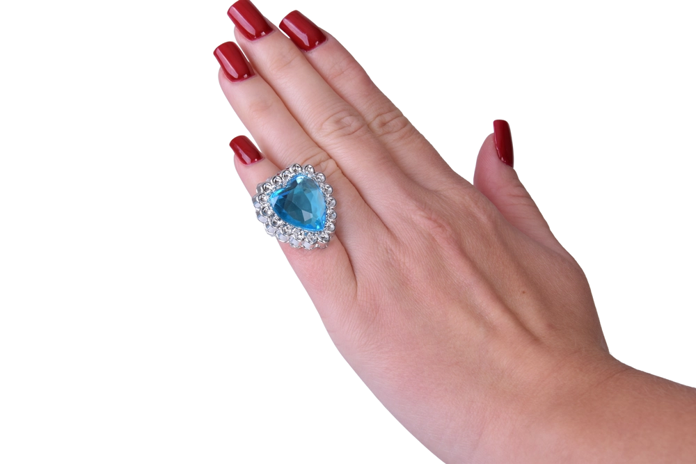 Cercei clip-on și inel statement cu pietre albastre în formă de inimă completează frumos întregul set și se pun/se scot cu ușurință.