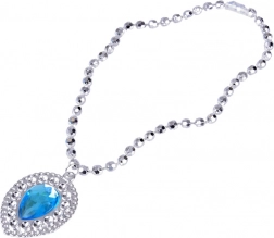 Tiara argintie cu pietre albastre și colier asortat cu pandantiv în formă de picătură adaugă fiecărui costum un farmec de basm.