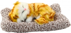 Pisoiul adormit pe pernă arată ca unul adevărat – imitația fină a blăniței, expresia delicată și poziția liniștită creează un decor cozy pentru camera copilului, living sau birou. Detaliile realiste în nuanțe de roșcat cu accente albe atrag privirea din prima.