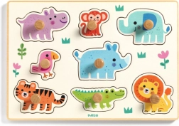 Descoperă puzzle-ul din lemn de tip insert cu animăluțe din junglă, pentru cei mici de la 12 luni. Datorită pieselor mari și lemnului solid, susține motricitatea fină, coordonarea mână–ochi și recunoașterea formelor și a animalelor. Calitatea brandului DJECO garantează un joc sigur și plin de bucurie.
