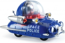 Mașinuța Djeco Crazy Motors Space Police aduce în camera copilului aventuri intergalactice. Vehiculul de poliție albastru cu inscripția SPACE POLICE are dom transparent cu o mică figurină de pilot, detalii argintii tip rachetă și roți pentru o rulare lină. Grozavă pentru joacă individuală sau pentru extinderea colecției Crazy Motors.