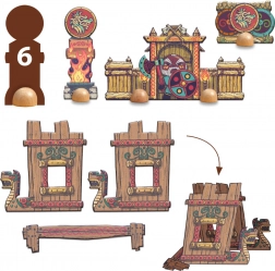Porți, scuturi, vetre și motive nautice pot fi asamblate ca obstacole ori ținte. Tiparul colorat și îmbinările stabile susțin jocul creativ.