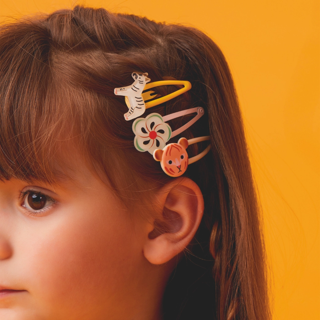 Înveselește coafura cu un accesoriu jucăuș – setul de agrafe Nadette de la DJECO adaugă fiecărui look o notă de exotism. Ideal pentru purtare zilnică și momente festive, cu prindere confortabilă și design delicat, pentru copii ce asigură fixare sigură și blândă a părului.