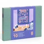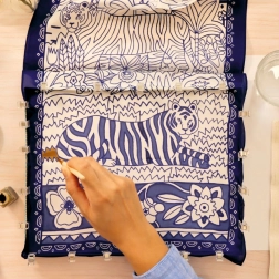 Setul Pictură pe mătase Atelier 10 de la DJECO oferă tot ce ai nevoie pentru a crea o eșarfă superbă, pictată manual. Contururile preimprimate cu motiv de tigru și elemente florale ghidează pensula și ușurează colorarea precisă, făcând proiectul potrivit chiar și pentru începători absoluți. Datorită vopselelor de calitate pentru textile, obții nuanțe intense și treceri line.