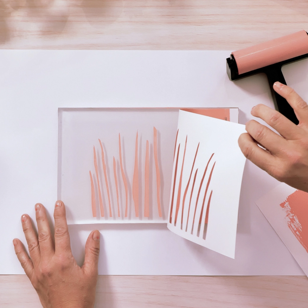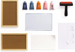 - Placă de tipar din gel, rolă din cauciuc (brayer), șabloane, culori, hârtii