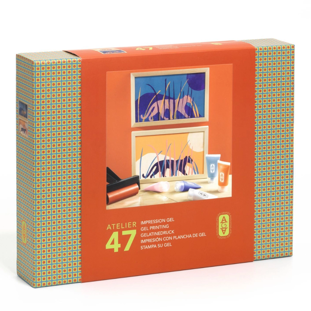 Setul pentru tipar gel DJECO Atelier aduce populara tehnică de gelli printing în condiții de casă. Aplici culoarea pe placa transparentă de gel, o întinzi cu brayerul și creezi motive unice cu ajutorul șabloanelor. Apoi așezi hârtia și transferi amprenta – fiecare tipar este original.