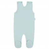 Salopeta, cu închidere pe umeri și între piciorușe, păstrează căldura la picioare și ușurează schimbarea scutecului.