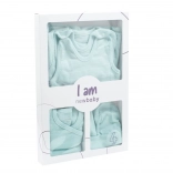 Acest set pentru nou-născut, în nuanța delicată de mentă, a fost conceput pentru confort și pentru pielea sensibilă a bebelușului. Bumbacul moale, respirabil și de calitate asigură confort pe tot parcursul zilei, iar închiderile gândite cu capse fac îmbrăcarea și schimbarea mult mai ușoare.