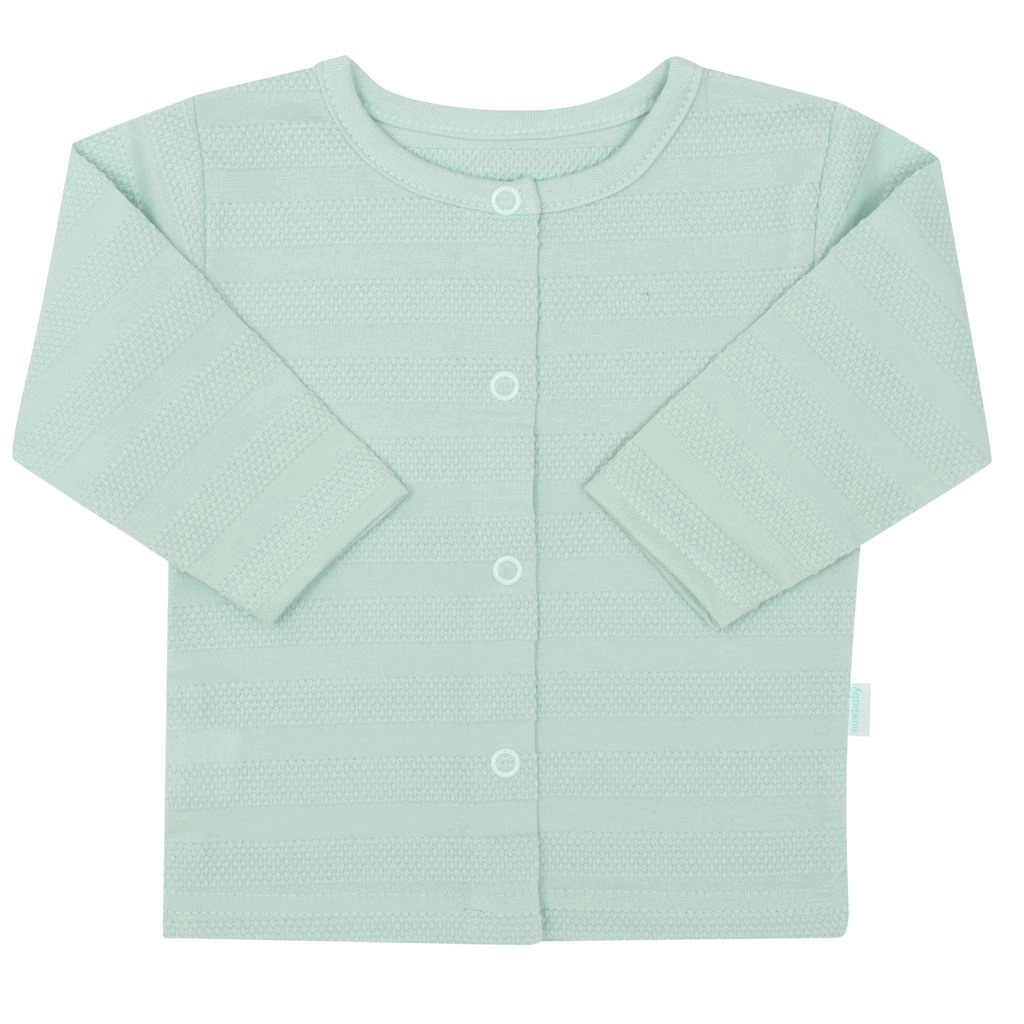 Acest set stilat de 7 piese NEW BABY I AM este creat pentru nevoile nou-născuților. Țesătura din bumbac moale este blândă cu pielea sensibilă, iar datorită sistemului inteligent de închidere cu capse, îmbrăcarea și schimbarea devin mai ușoare. Nuanța de mentă și textura discretă a materialului oferă un aspect modern, ideal ca cadou pentru bebeluș și pentru maternitate.