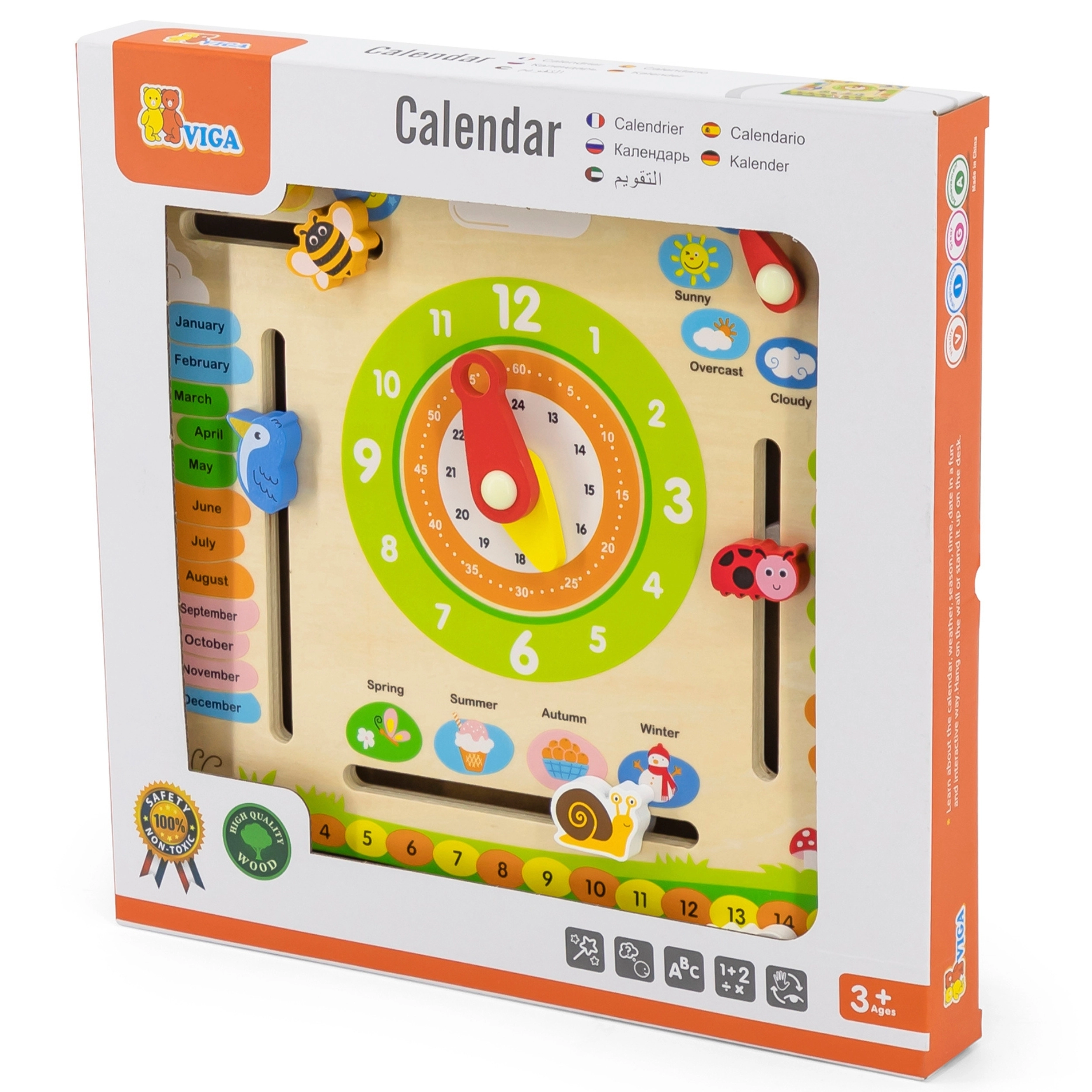 Calendarul educativ VIGA este un instrument ideal pentru copii pentru a învăța despre timp, schimbările vremii și anotimpuri. Datorită elementelor colorate și mobile, ajută la înțelegerea zilnică a conceptului de timp.