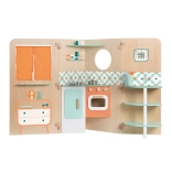 Căsuța se desfășoară ușor în zone de joacă și se pliază la fel de simplu într-o formă compactă, fiind ideală pentru camere mai mici. Setul bogat de accesorii (oale, cești, tacâmuri, sare și piper) susține jocul de rol, interacțiunile sociale și dezvoltarea abilităților.