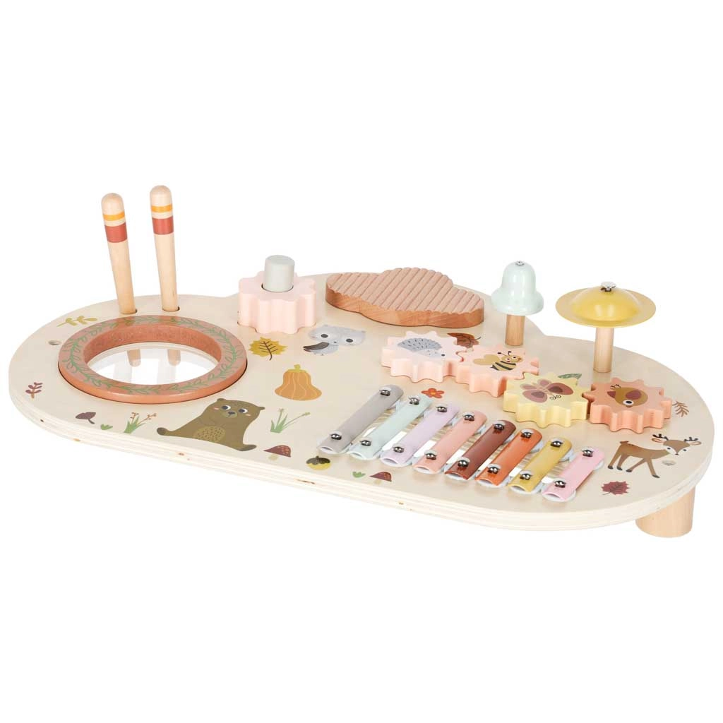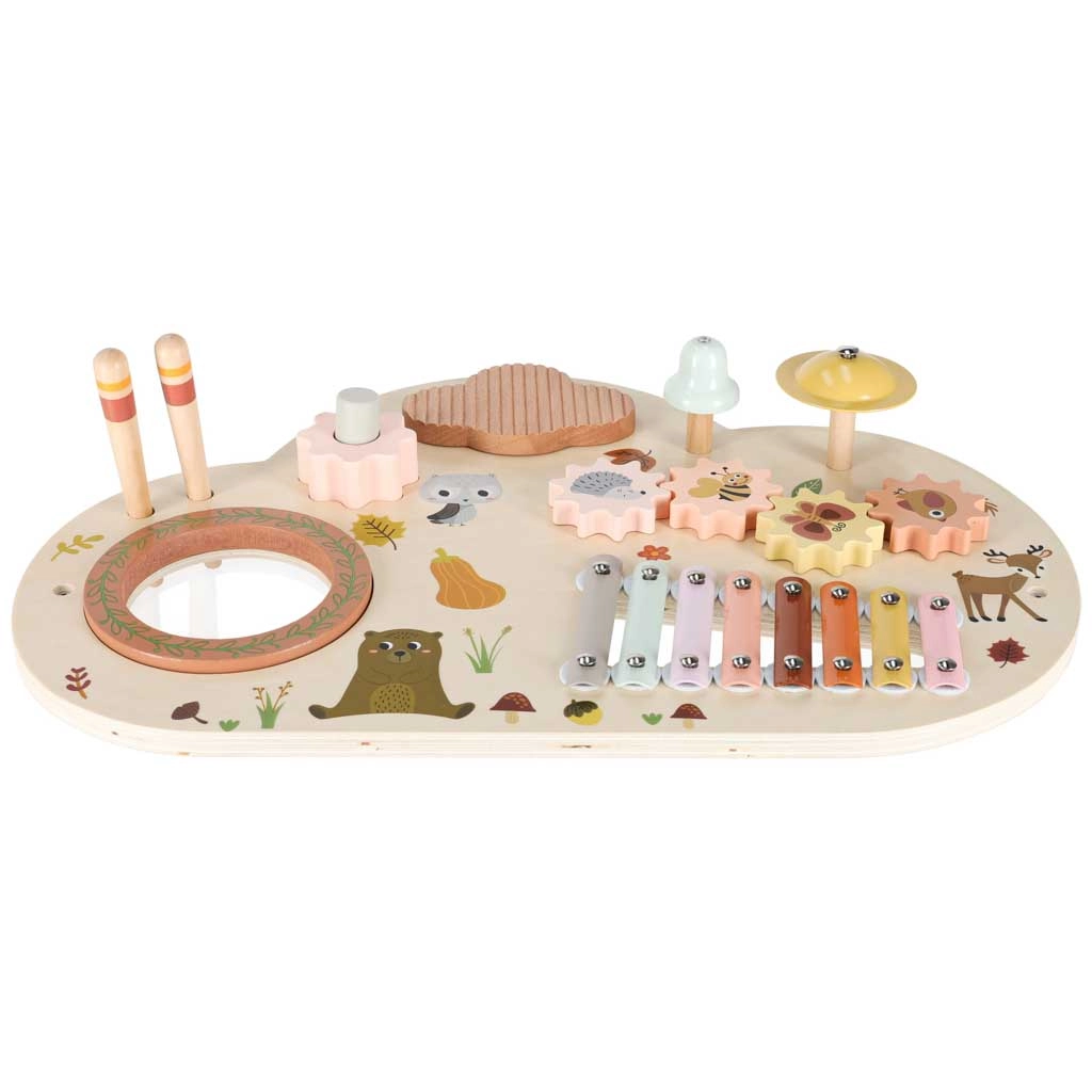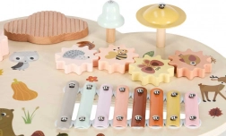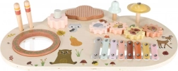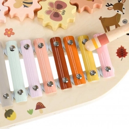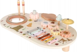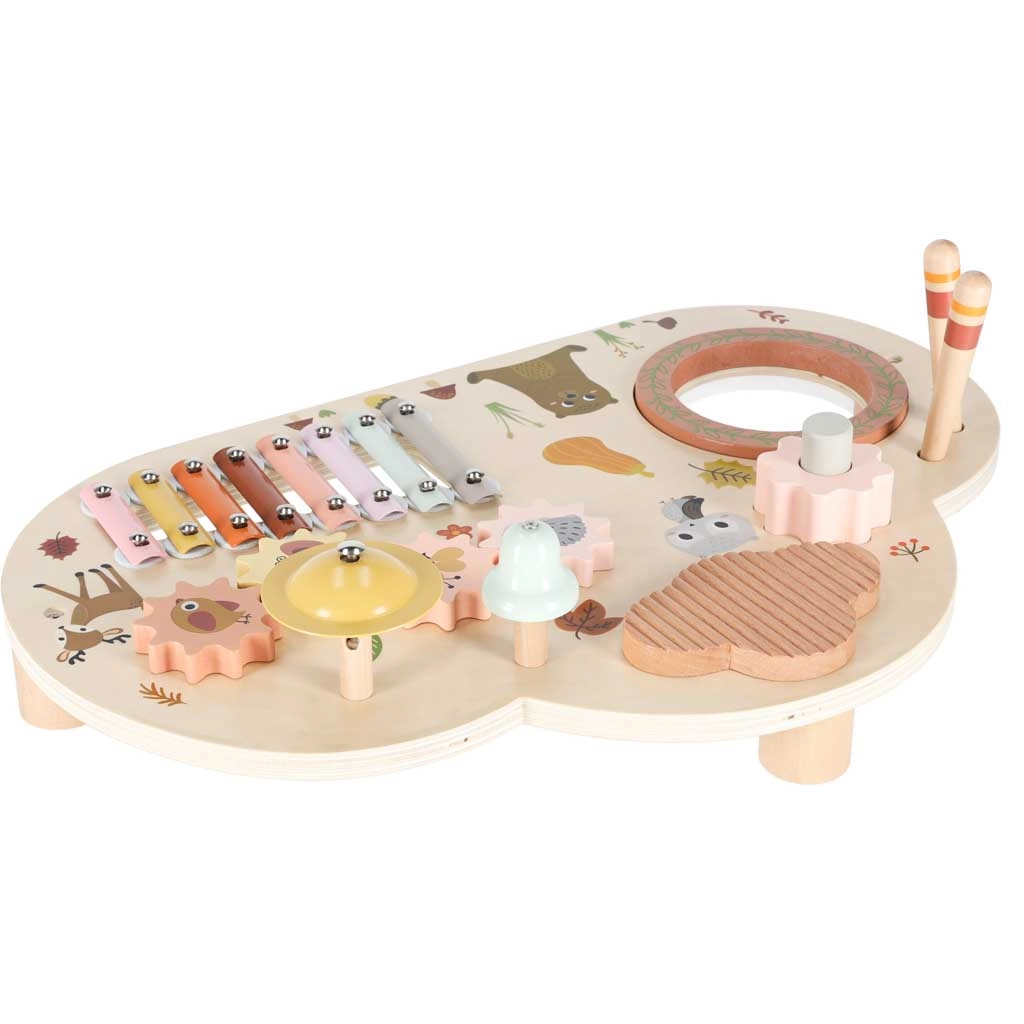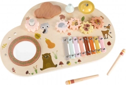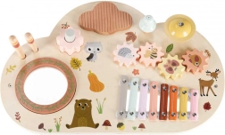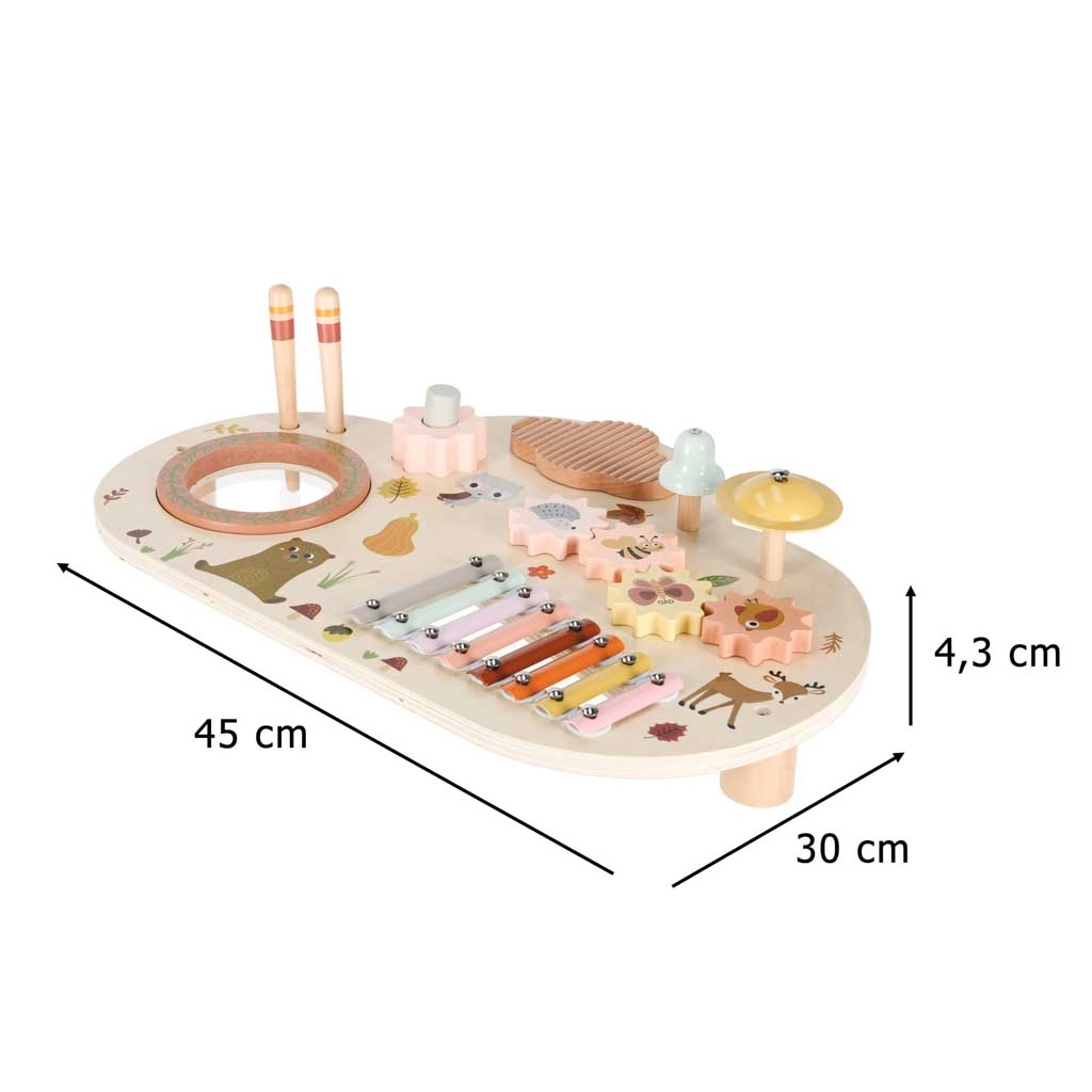 Descoperă lumea ritmului și creativității cu această măsuță muzicală din lemn pentru cei mici. Combină xilofon, tobă, clopoțel și alte elemente senzoriale pentru distracție, învățare și dezvoltarea motricității. Datorită picioarelor stabile, lemnului de calitate și designului pastelat, este alegerea ideală pentru primele descoperiri muzicale.