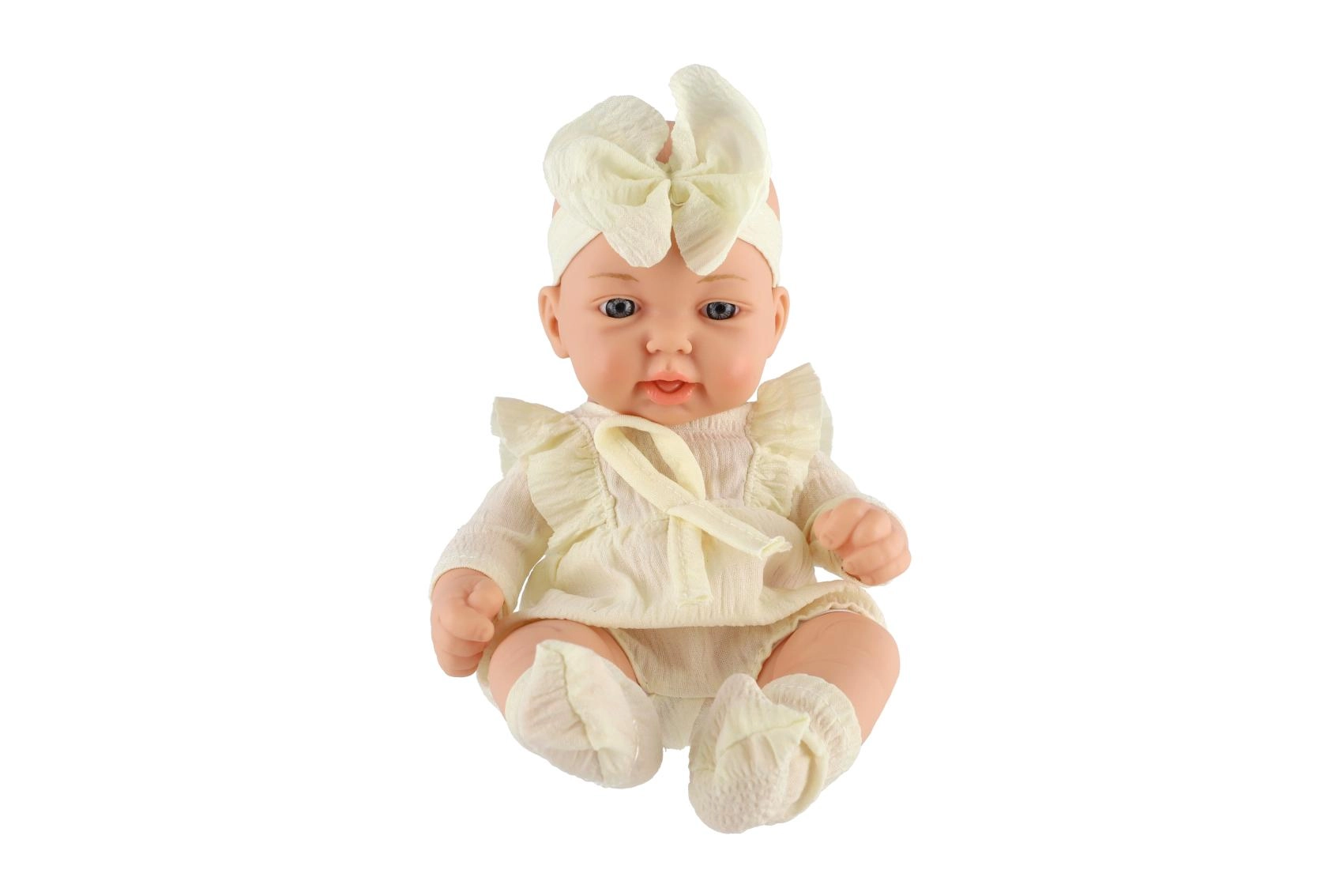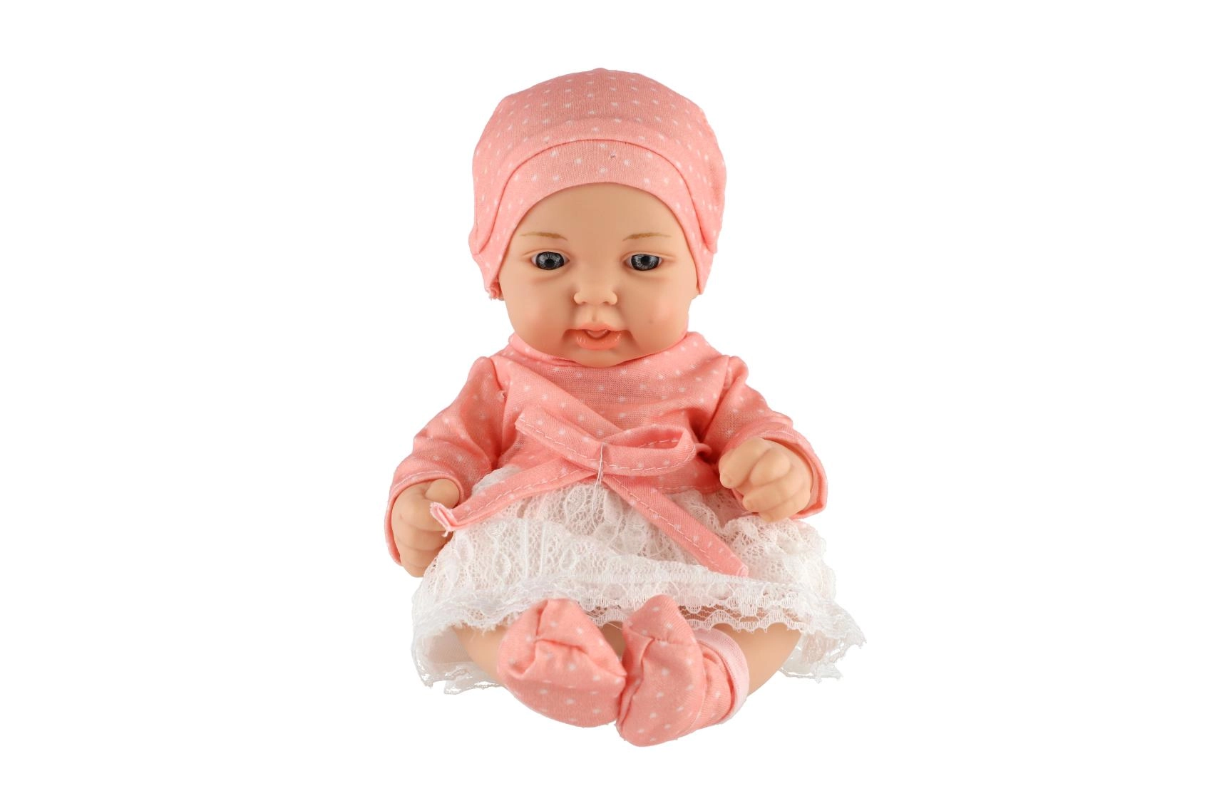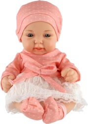 Această păpușă bebeluș de 26 cm are o fațișoară detaliată, mânuțe și piciorușe modelate și un corp rezistent din plastic. Fiecare păpușă este îmbrăcată într-un set diferit, stilistic asortat – de la rochițe cu flori la accesorii tricotate – astfel încât copiii își pot găsi ușor favorita.