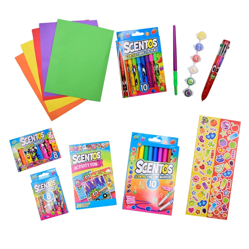 Descoperă setul creativ parfumat SCENTOS – mediu, care aduce copiilor de la 3 ani ore de distracție și dezvoltare a imaginației. Setul oferă markere parfumate, creioane colorate, creioane cerate și pixuri speciale cu vârfuri diferite pentru tehnici variate de desen. Nu lipsesc tempera cu pensulă, autocolante tematice și hârtii colorate. Ideal pentru dezvoltarea motricității fine, a percepției senzoriale și a creativității.
