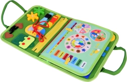 Această cărticică creativă dezvoltă abilitățile copiilor prin joc semnificativ. În interior veți găsi pagini moi detașabile cu fermoare, catarame, nasturi, șnururi, forme cu arici și elemente educative precum ceas cu ace rotative, zilele săptămânii, vremea și calendarul. Copiii își exersează coordonarea ochi–mână și gândirea logică.