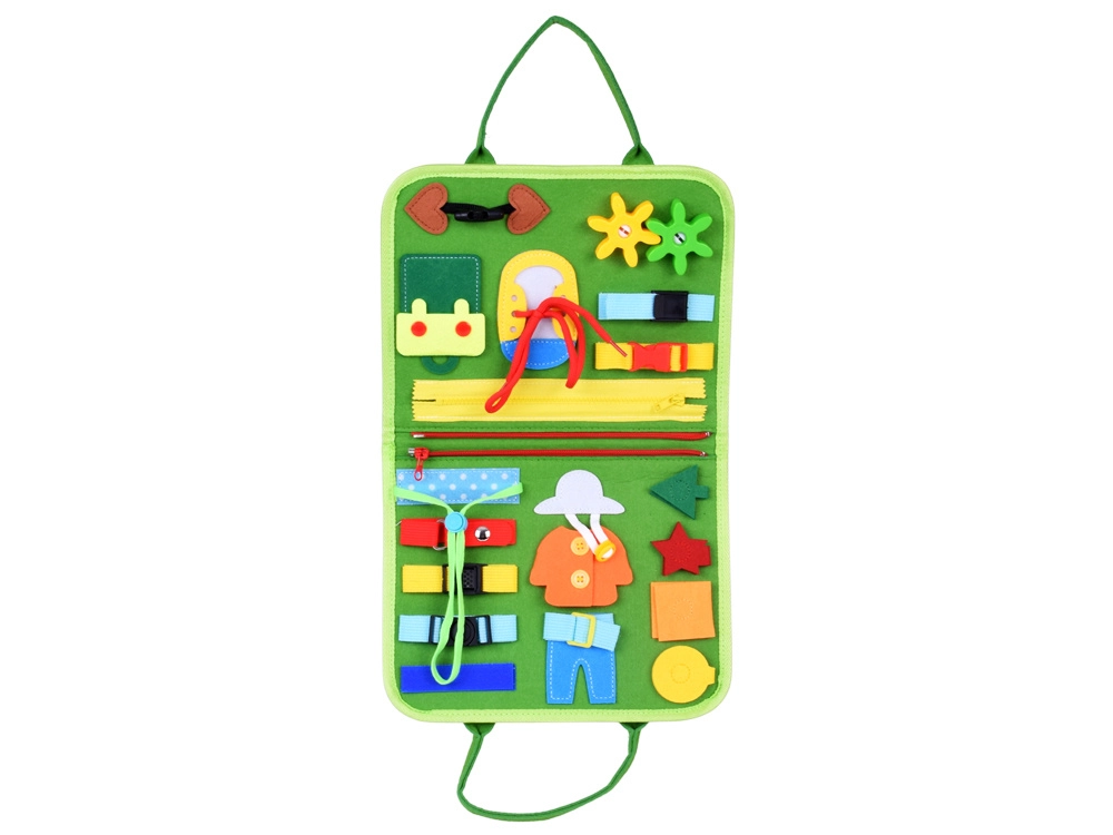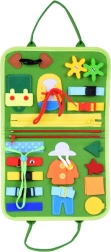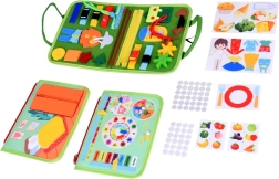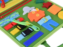 Șireturi, fermoare, catarame, nasturi, forme cu arici, bucătărie, cămăruță, grădină și calendar – o ofertă variată de activități pentru dezvoltarea motricității și logicii.