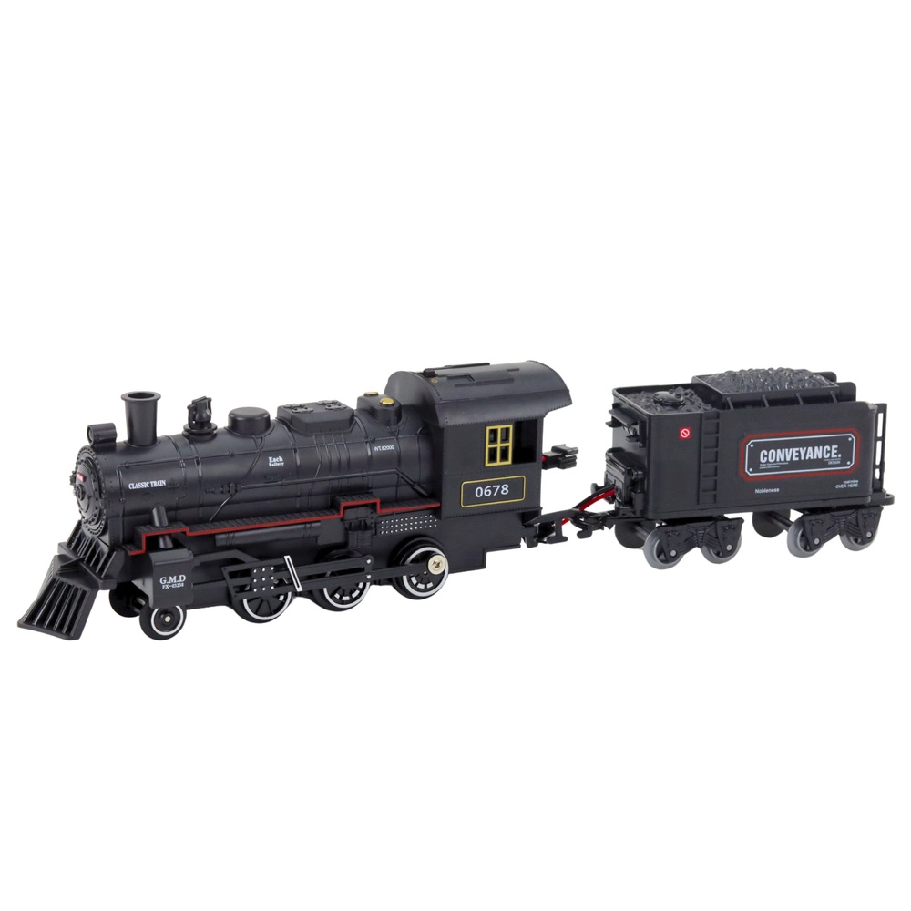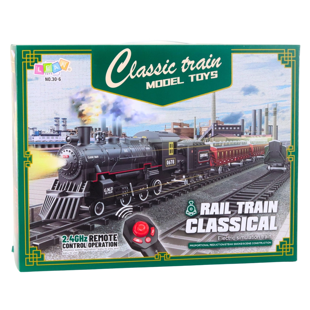 Acest tren electric clasic reproduce fidel o locomotivă cu abur – este suficient să adaugi câteva picături de apă în coș, iar în mers va apărea abur realist. Locomotiva are faruri funcționale și redă sunete autentice, făcând fiecare cursă și mai captivantă. Controlul pe frecvența 2.4 GHz asigură schimbarea lină a vitezei și direcției, precum și o conexiune fiabilă fără interferențe.