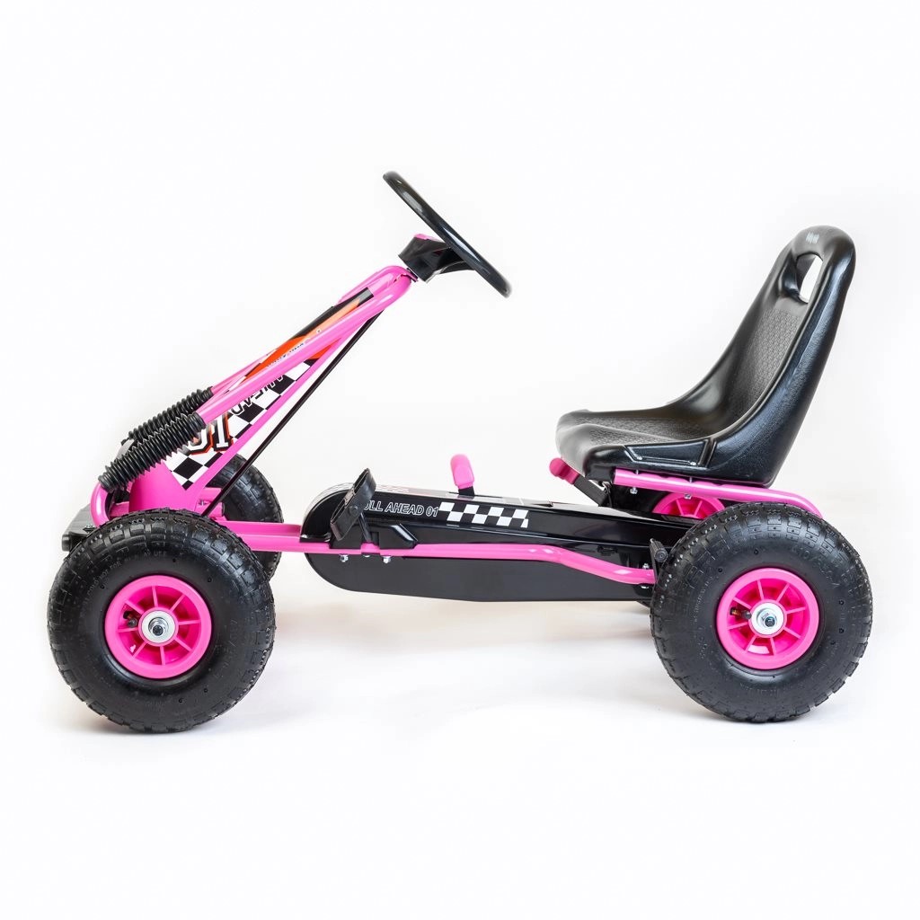 Roțile mari gonflabile cu rulmenți (25 × 8 cm) oferă aderență excelentă, amortizarea denivelărilor și stabilitate la mers, atât în aer liber, cât și în curte.