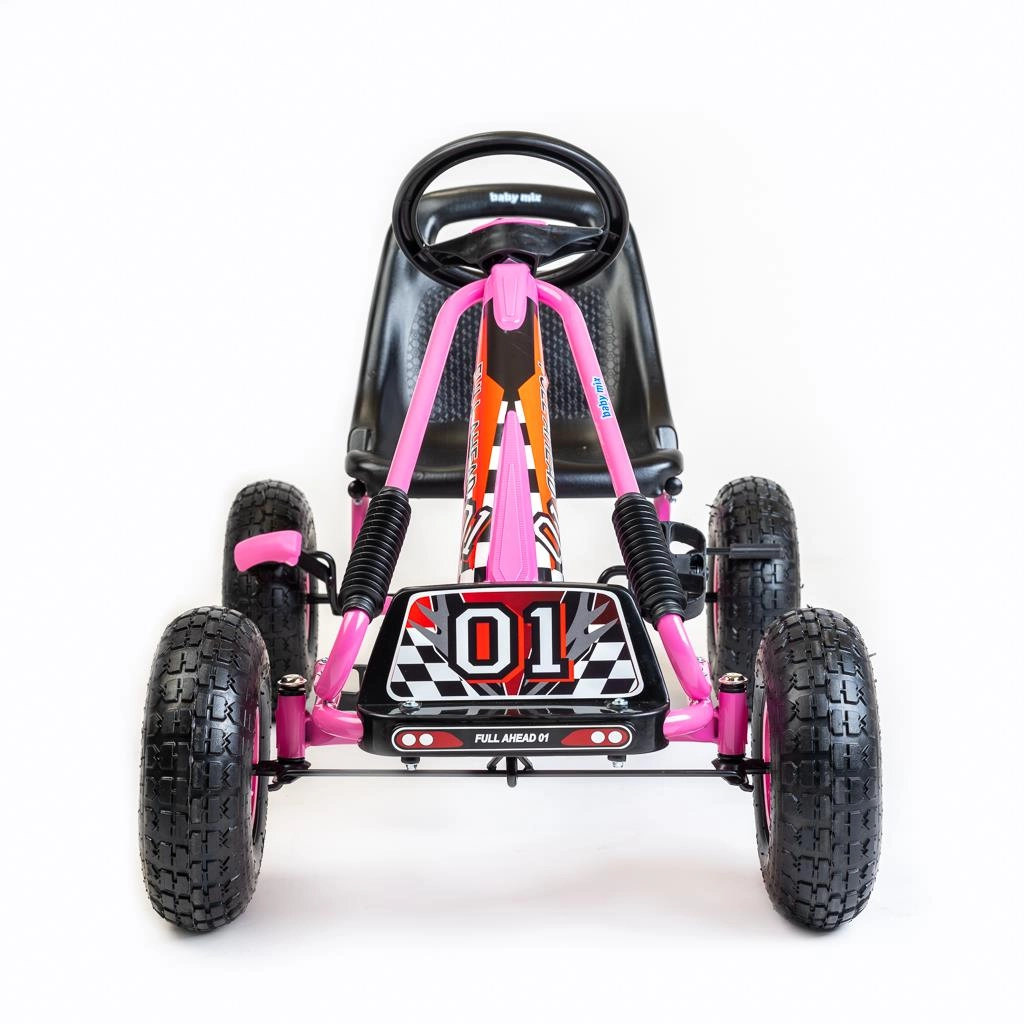 Descoperiți bucuria mișcării cu kartul Baby Mix Razor. Datorită scaunului ergonomic cu reglaj în 2 trepte și volanului sport, copiii se pot plimba confortabil atât în casă, cât și afară. Roțile mari din cauciuc gonflabile cu rulmenți (25 × 8 cm) oferă stabilitate, amortizare și contact sigur cu terenul.