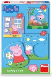 Setul de puzzle Peppa Pig: Familie aduce distracție celor mici care învață să așeze corect formele. Setul conține trei imagini împărțite în 3-5 piese, astfel încât după ce copilul dumneavoastră stăpânește cel mai simplu, poate trece la cele mai dificile. Fiecare puzzle prezintă un motiv frumos cu purcelușa Peppa care va captiva orice mic constructor.