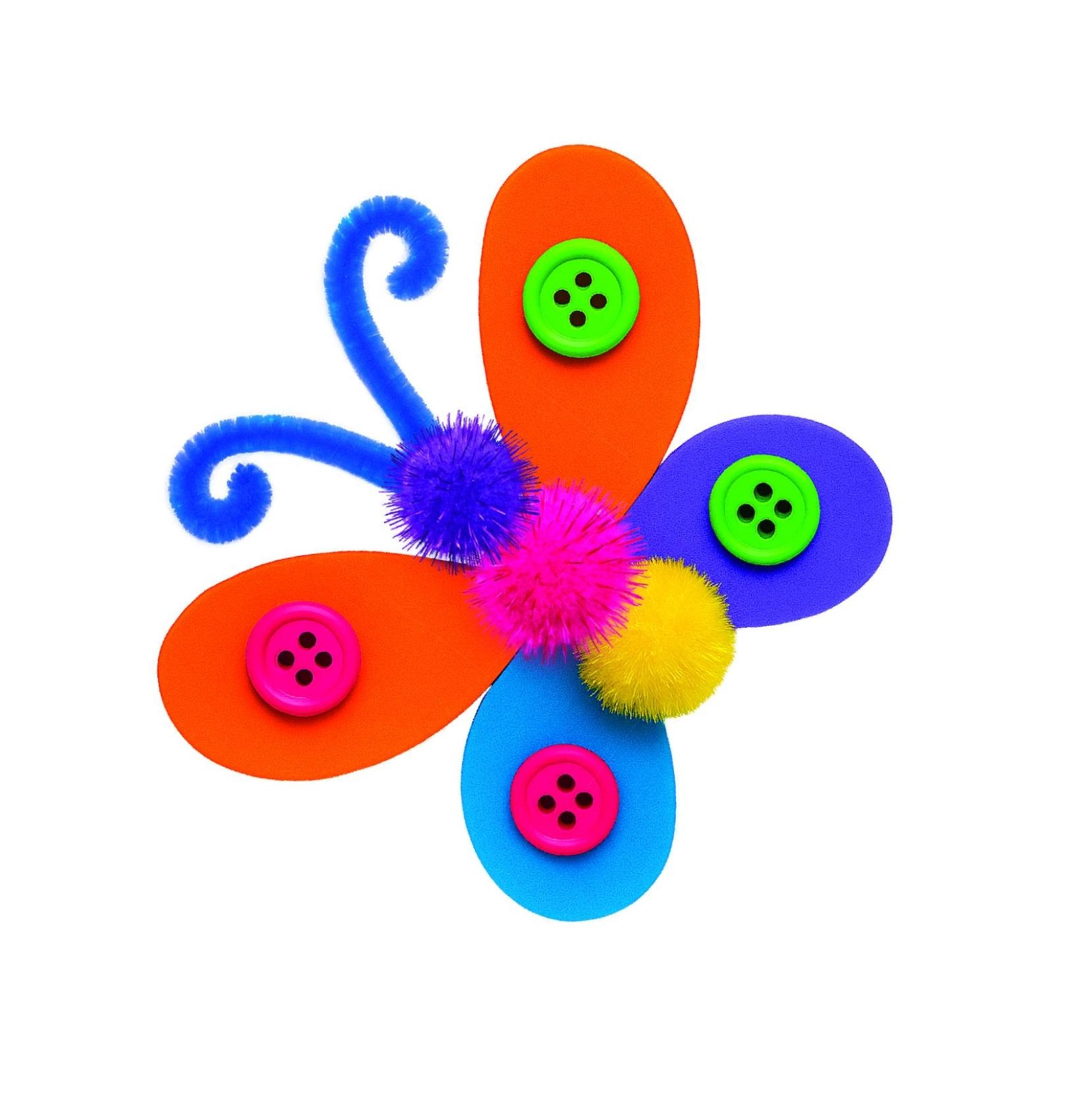 Combină aripi din spumă, nasturi, pom-pom-uri și sârmulițe pufoase și creează fluturi unici. Grozav pentru exersarea motricității fine și a combinațiilor de culori.
