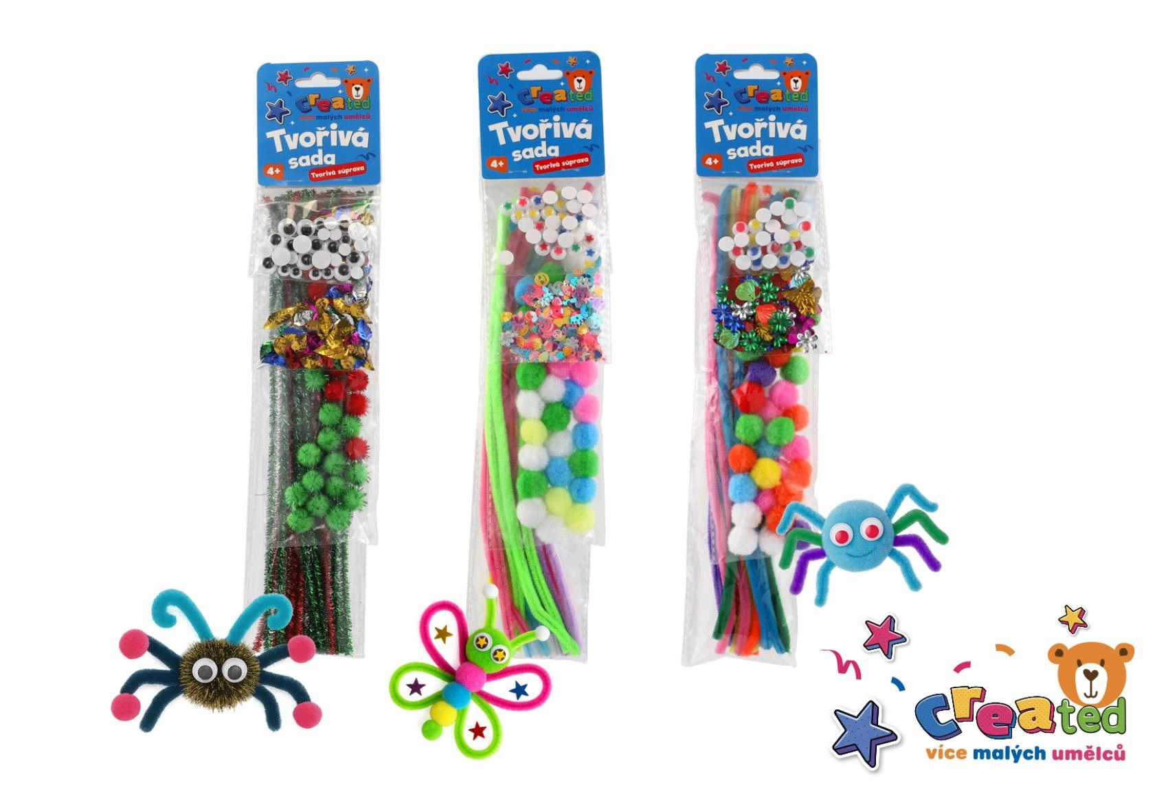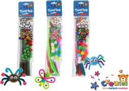 Acest set creativ este ideal pentru micii meșteri care adoră să descopere lumea culorilor și a formelor. Copiii își exersează motricitatea fină, răbdarea și gândirea creativă și, în același timp, se distrează creând păianjeni, fluturași și alte decorațiuni vesele.