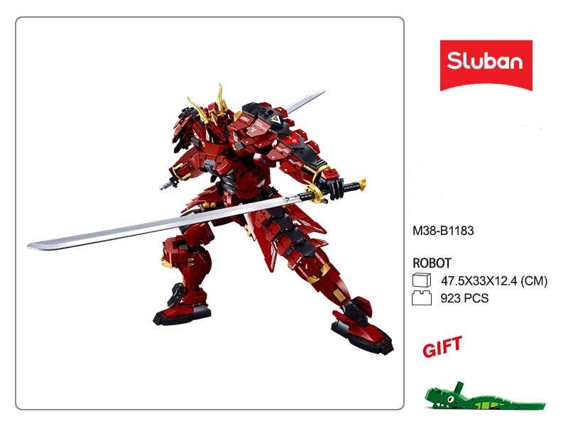 Pășește în lumea duelurilor pline de acțiune cu setul de construit Sluban Robot samurai. Acest impunător războinic mecha roșu are brațe, picioare și cap mobile, poartă armură detaliată cu accente aurii și este înarmat cu două katane. Setul din plastic ABS de calitate oferă 923 piese, o experiență excelentă de construcție și este compatibil cu LEGO și alte mărci.