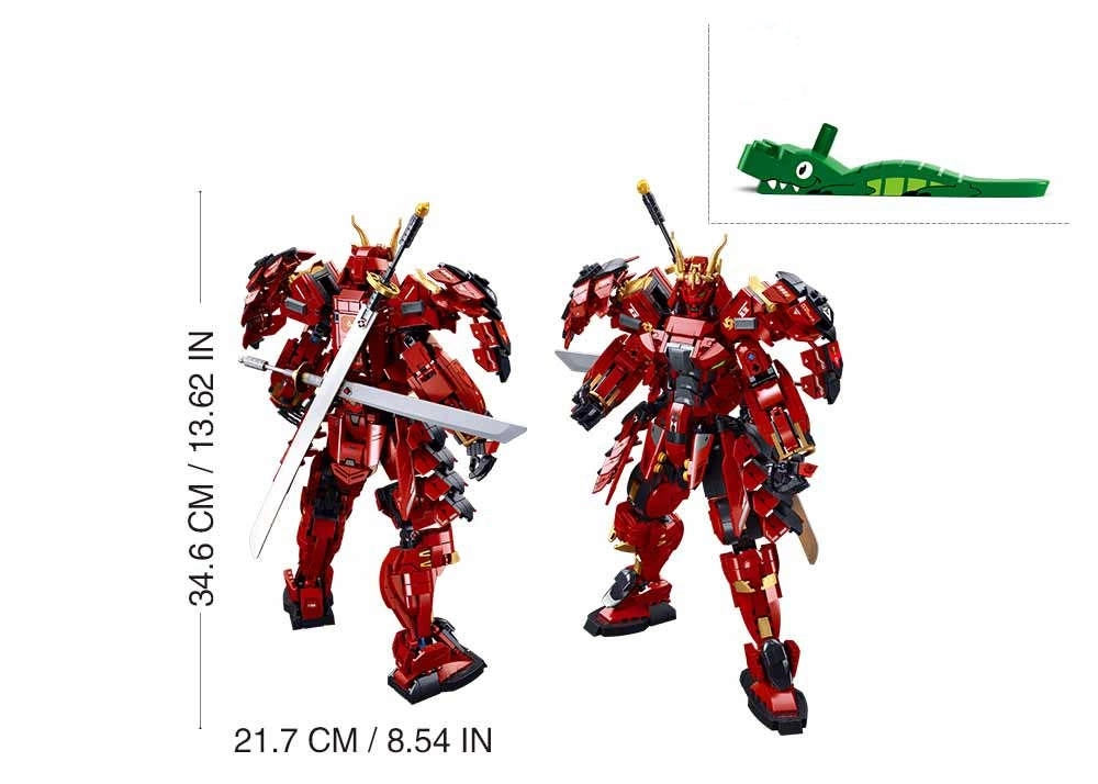 Setul de construit Sluban Robot samurai îmbină puterea mecha modern cu tradiția samurailor japonezi. Datorită detaliilor bogate, culorii roșii puternice și elementelor aurii, modelul arată impresionant atât pe raft, cât și în timpul jocului. Articulațiile mobile îți permit să setezi poziții dinamice de luptă, iar perechea de katane subliniază stilul autentic de samurai.