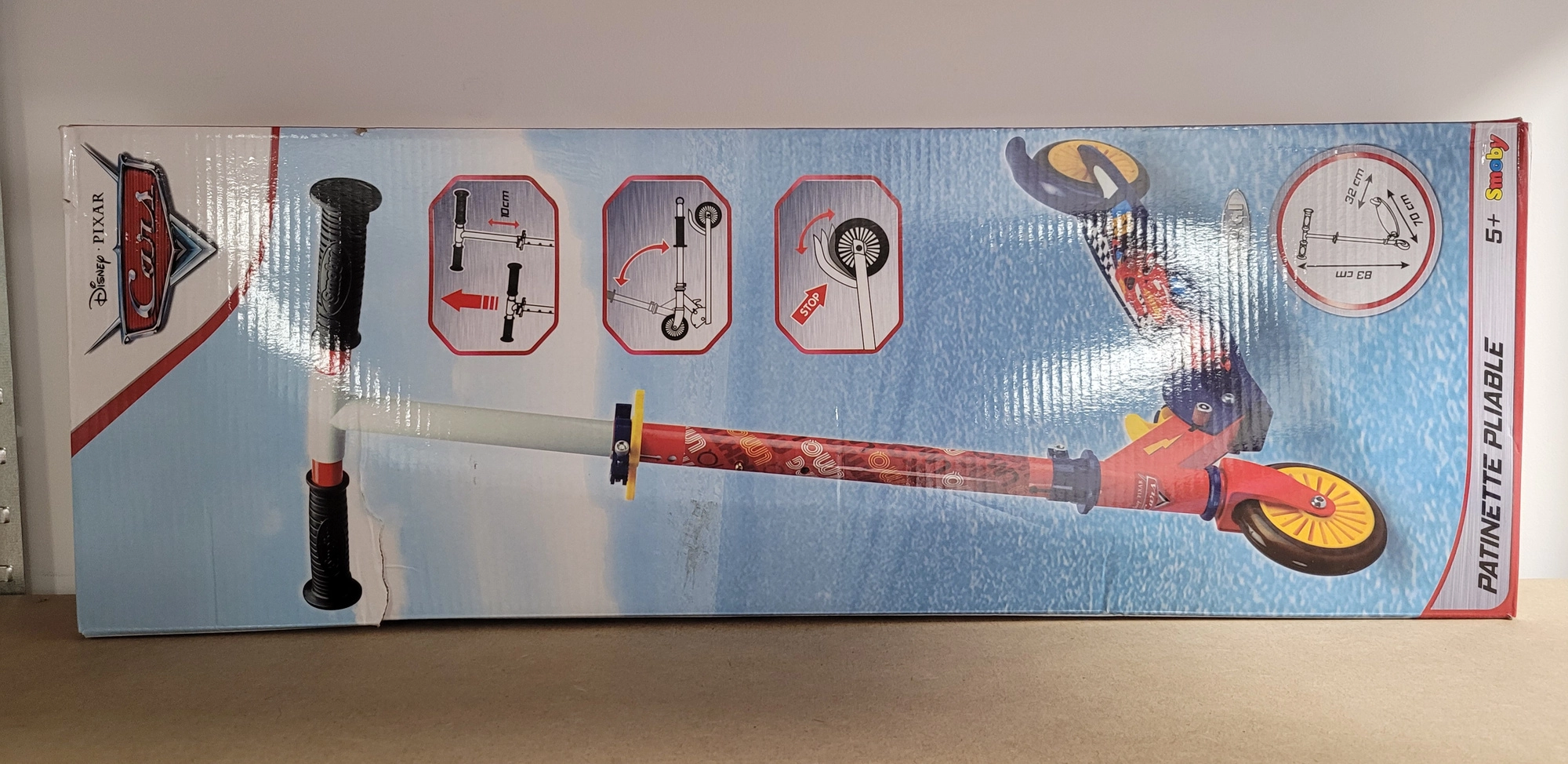 Trotinetă ușoară și rezistentă pentru copii cu motivul Cars CARS – Fulger McQueen, care îi va încânta pe toți micii rideri. Are structură din aluminiu, ghidon reglabil (73–83 cm), platformă lată antiderapantă, roți silențioase și frână de picior. Sarcină maximă 50 kg, ideală de la 5 ani. Avertizare: ambalaj deteriorat, mici zgârieturi/ciobituri.