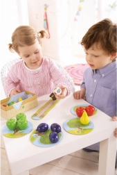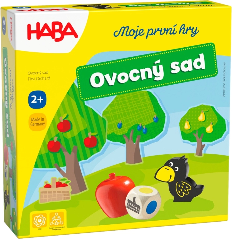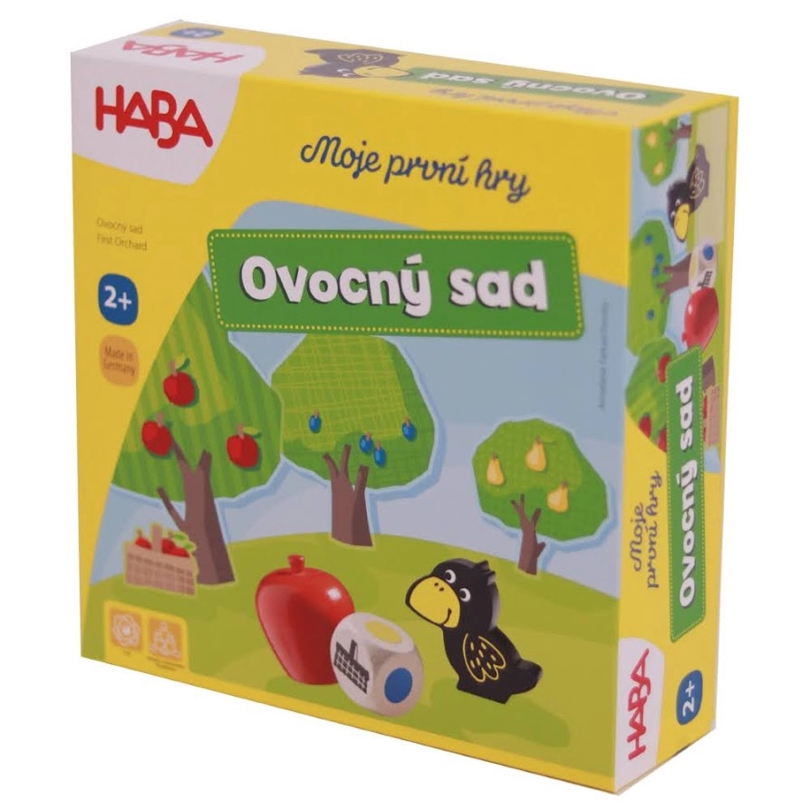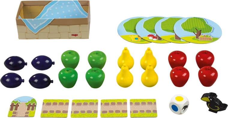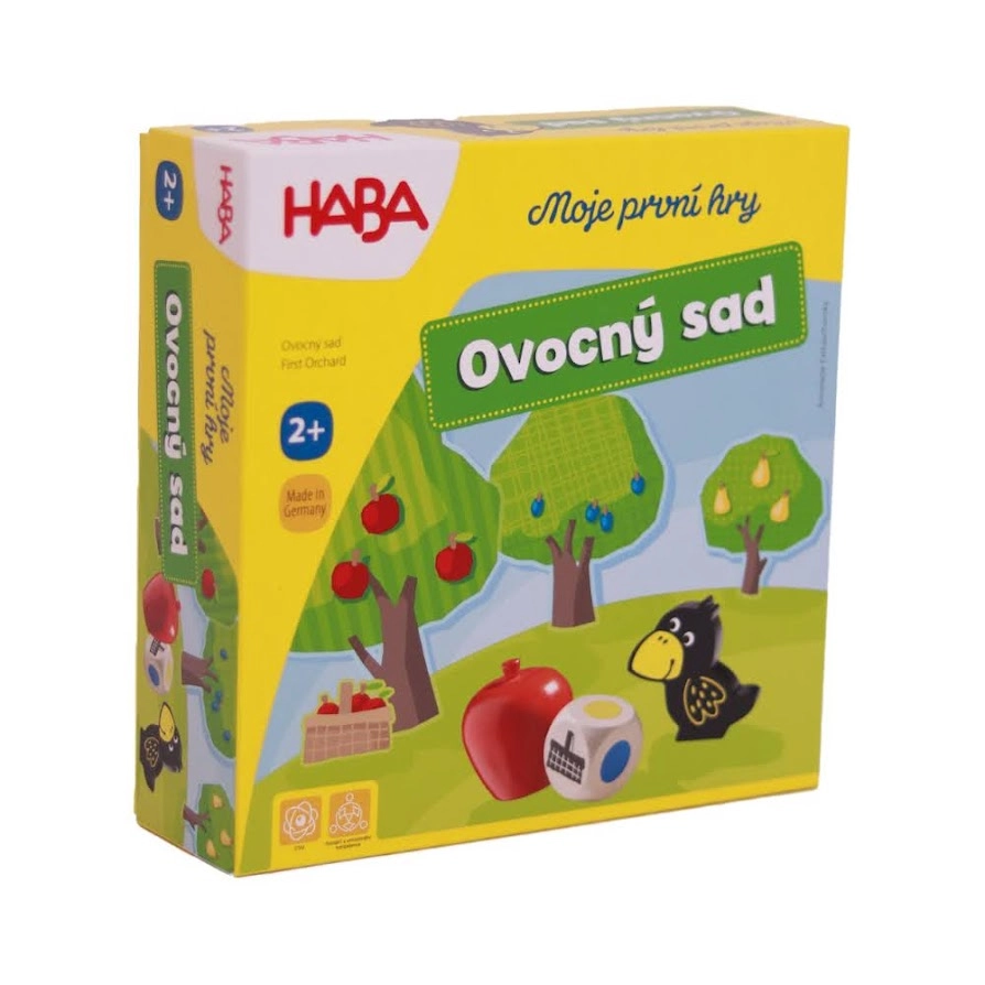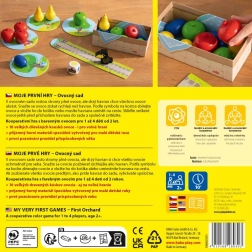 Jocul cooperativ pentru copii Haba Primele mele jocuri: Livada cu fructe îi învață pe cei mici colaborarea, culorile și reguli simple. Culegeți împreună fructele din livadă înainte să sosească corbul – dacă reușiți, câștigați cu toții. Ideal pentru 1–4 jucători și partide scurte de aproximativ 10 minute.