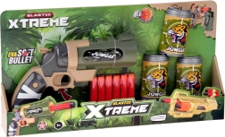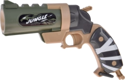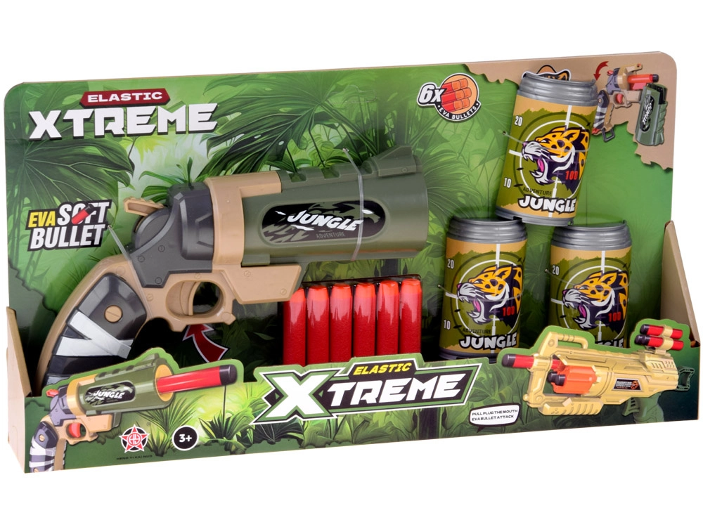 - 1× pistol JUNGLE, 6× proiectil din spumă (vârf de cauciuc), 3× țintă din plastic – doză