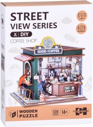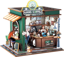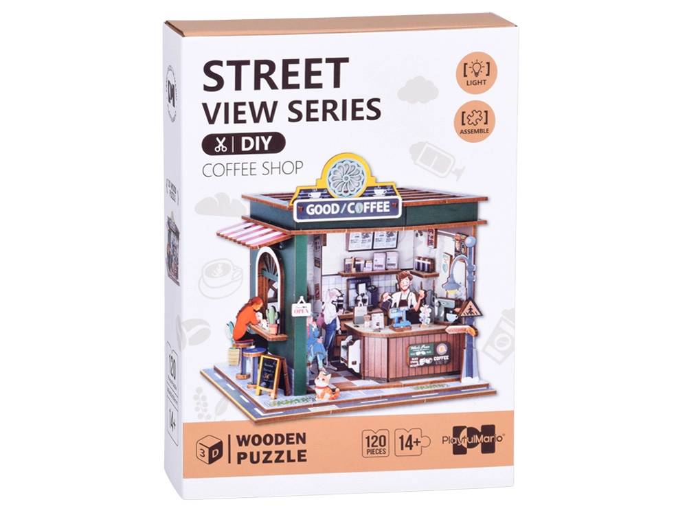 Acest set detaliat din seria Street View transformă foile plate într-o mini cafenea cu vitrină, bar și accesorii plină de stil. Conceptul deschis îți permite să privești în interior și să admiri rafturile, espressorul și micile decorațiuni. Banda LED creează după lăsarea serii o atmosferă plăcută și primitoare, iar modelul se evidențiază ca decor pentru raft sau birou.
